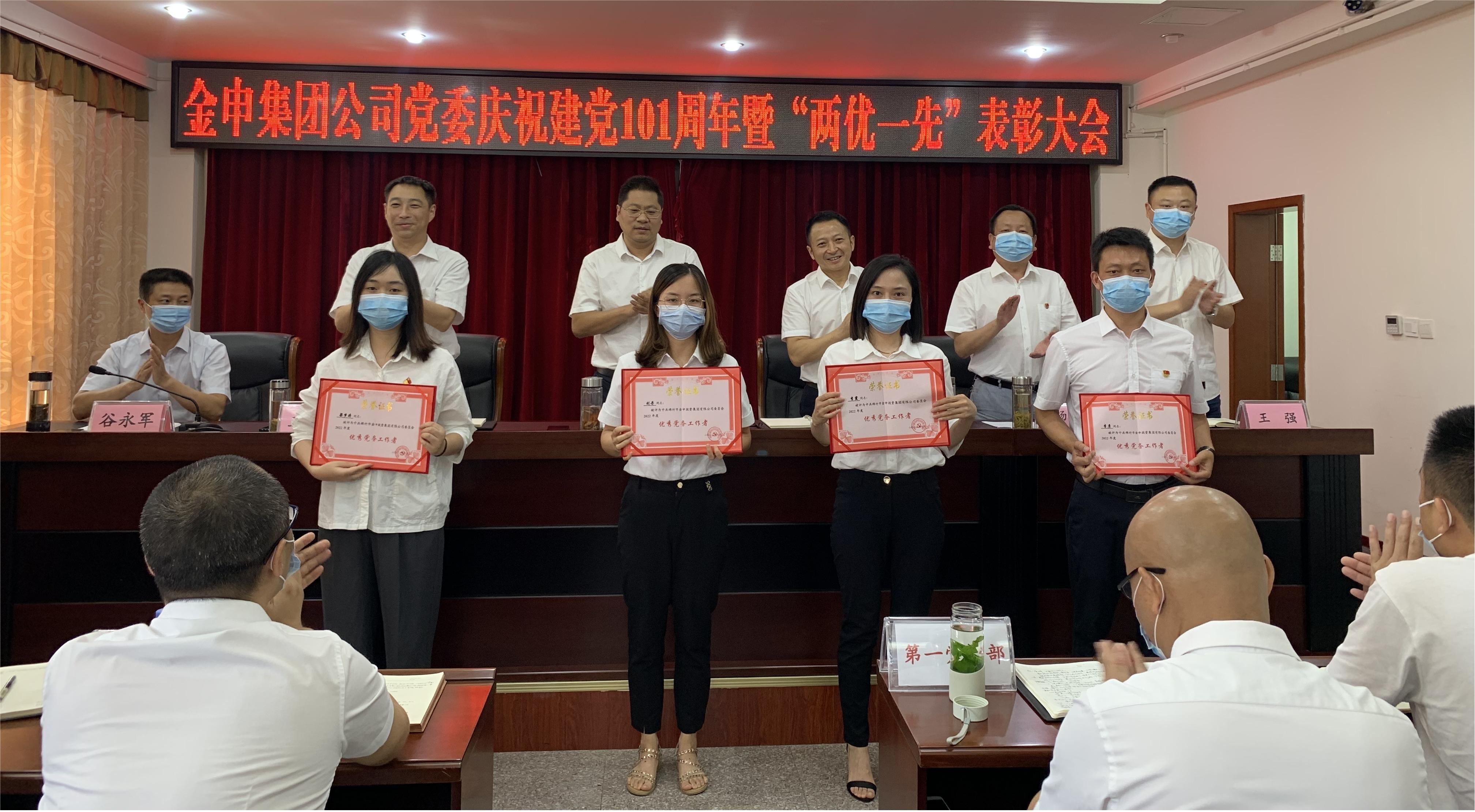 6月30日下午,綿竹市金申投資集團(tuán)有限公司召開慶祝建黨101周年暨“兩優(yōu)一先”表彰大會。集團(tuán)公司全體黨員共計(jì)60余人參會。