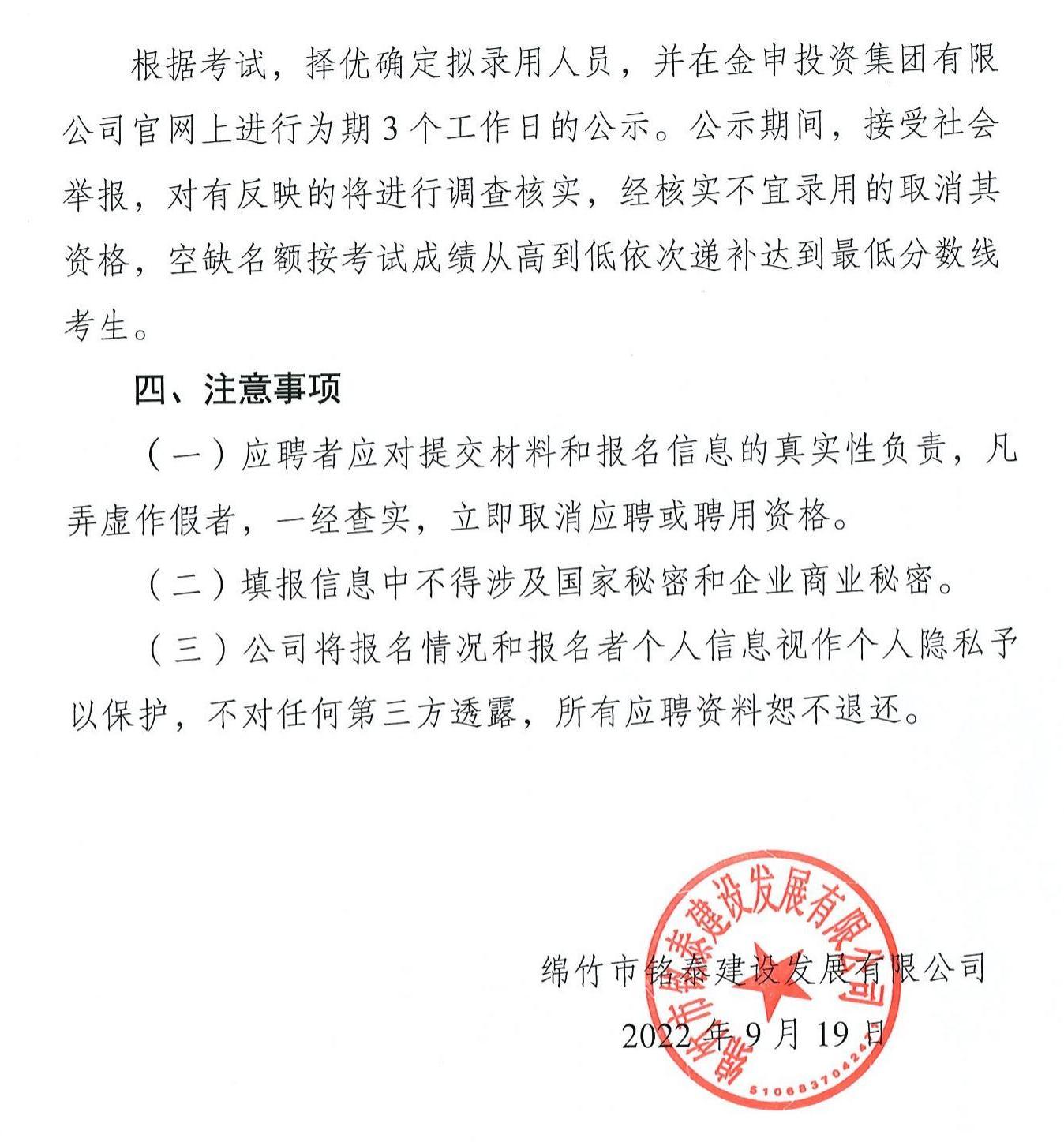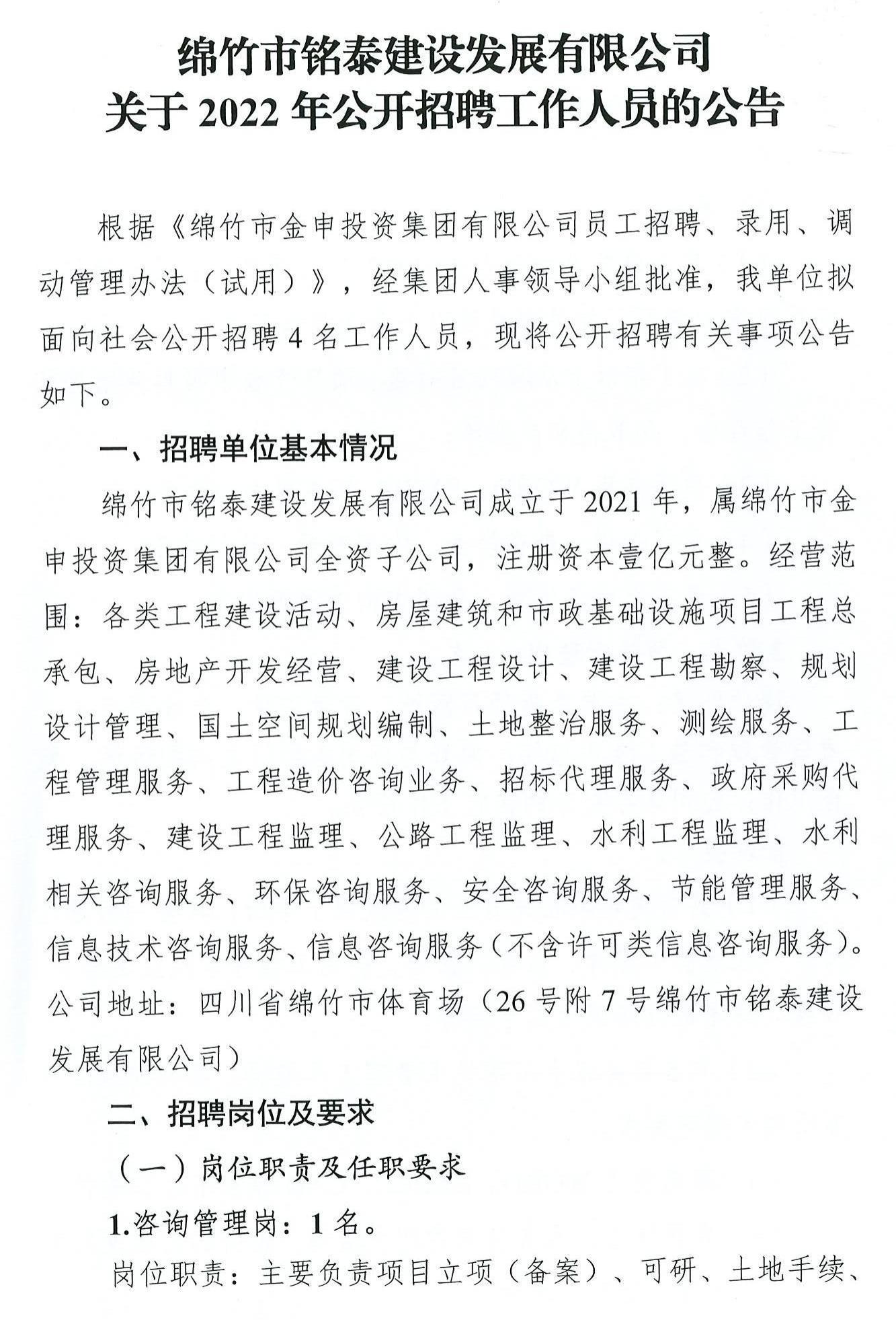 綿竹市銘泰建設(shè)發(fā)展有限公司公開招聘工作人員公告