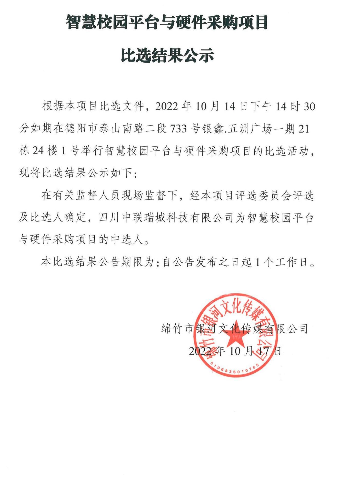 智慧校園平臺(tái)與硬件采購(gòu)項(xiàng)目比選結(jié)果公示