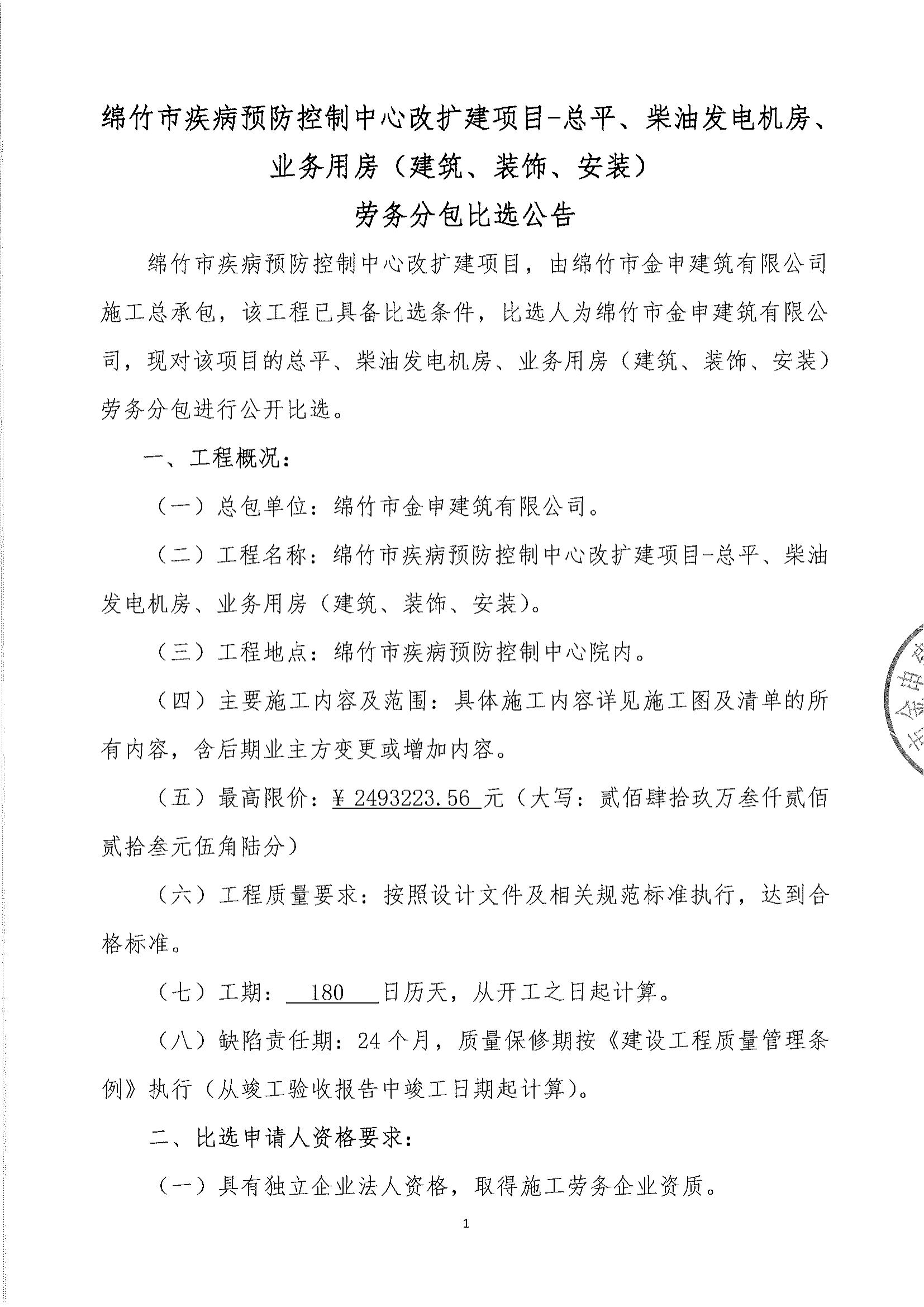 綿竹市疾病預(yù)防控制中心改擴(kuò)建項(xiàng)目勞務(wù)分包比選公告