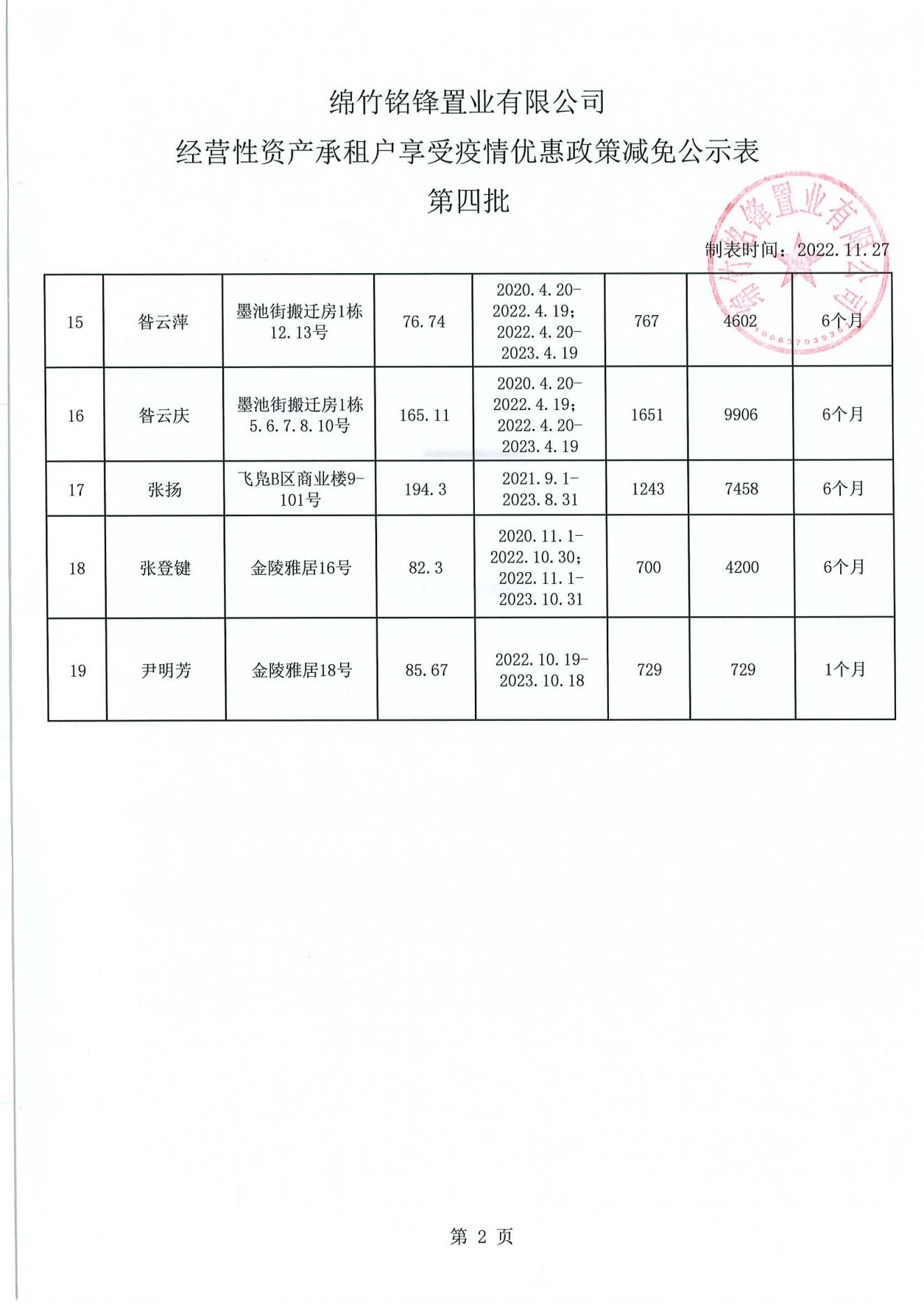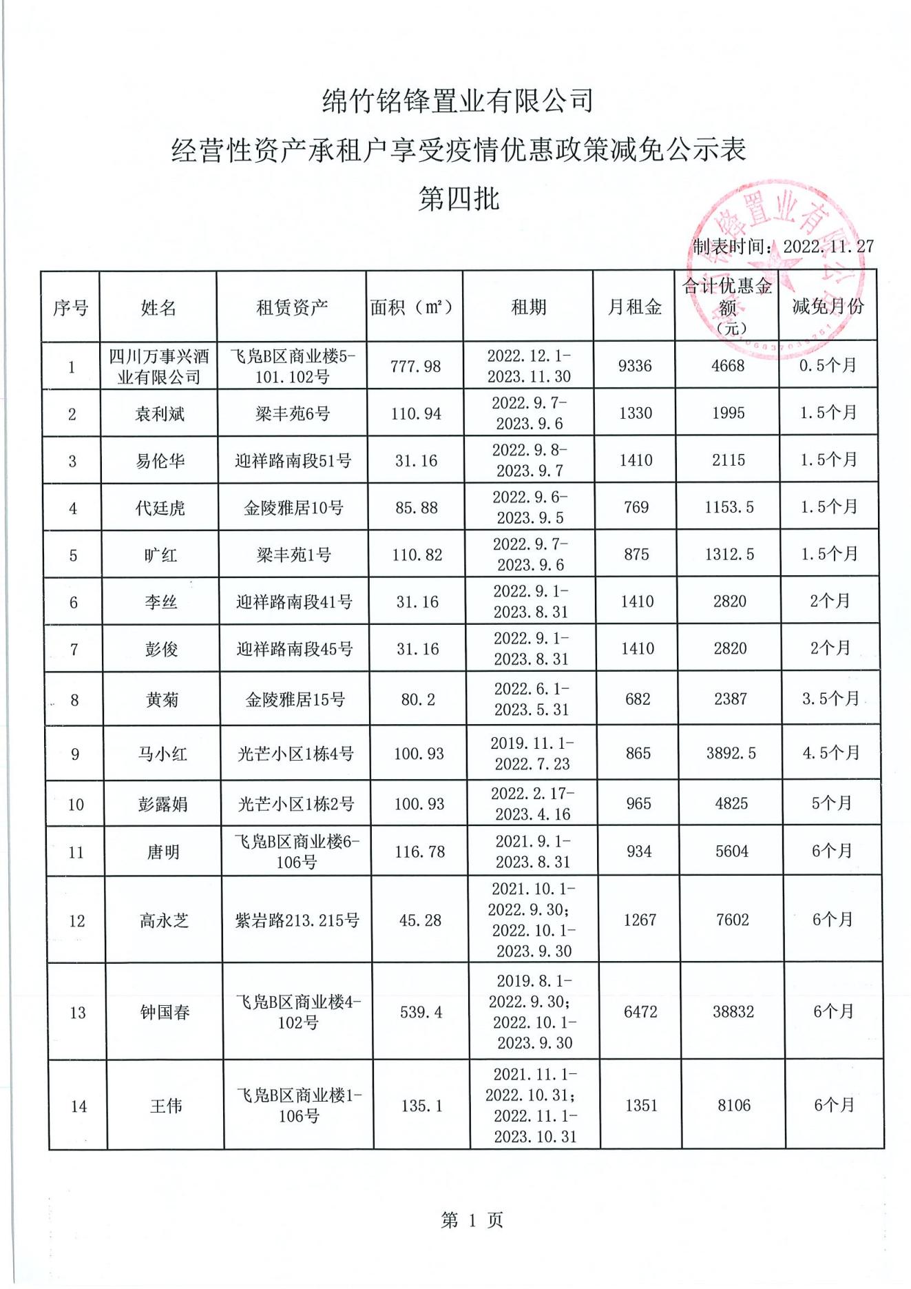 經(jīng)營性資產(chǎn)承租戶享受疫情優(yōu)惠政策減免公示表(第四批)