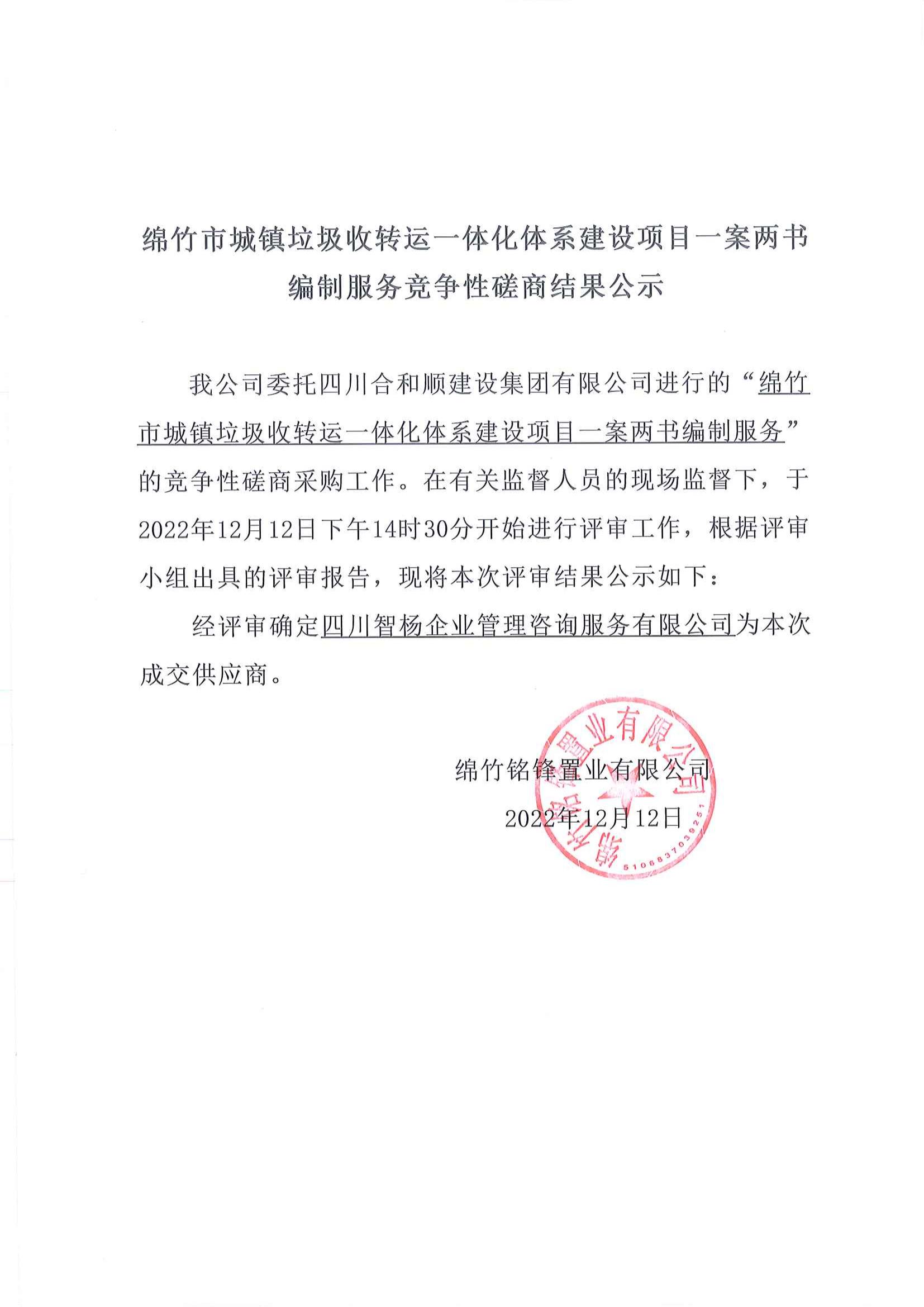 城鎮(zhèn)垃圾收轉(zhuǎn)運(yùn)一體化體系建設(shè)項(xiàng)目編制服務(wù)招標(biāo)結(jié)果公示