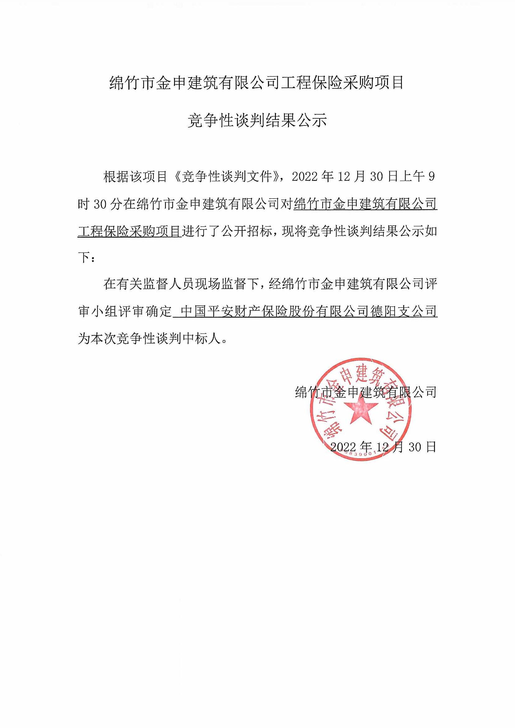 金申建筑有限公司工程保險采購項(xiàng)目競爭性談判結(jié)果公示