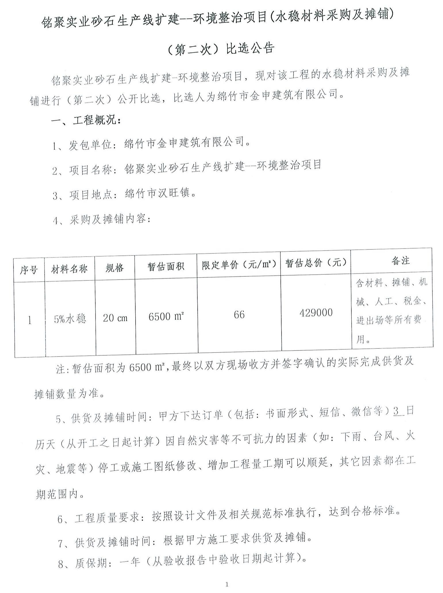 銘聚實(shí)業(yè)砂石生產(chǎn)線擴(kuò)建環(huán)境整治項(xiàng)目(第二次)比選公告
