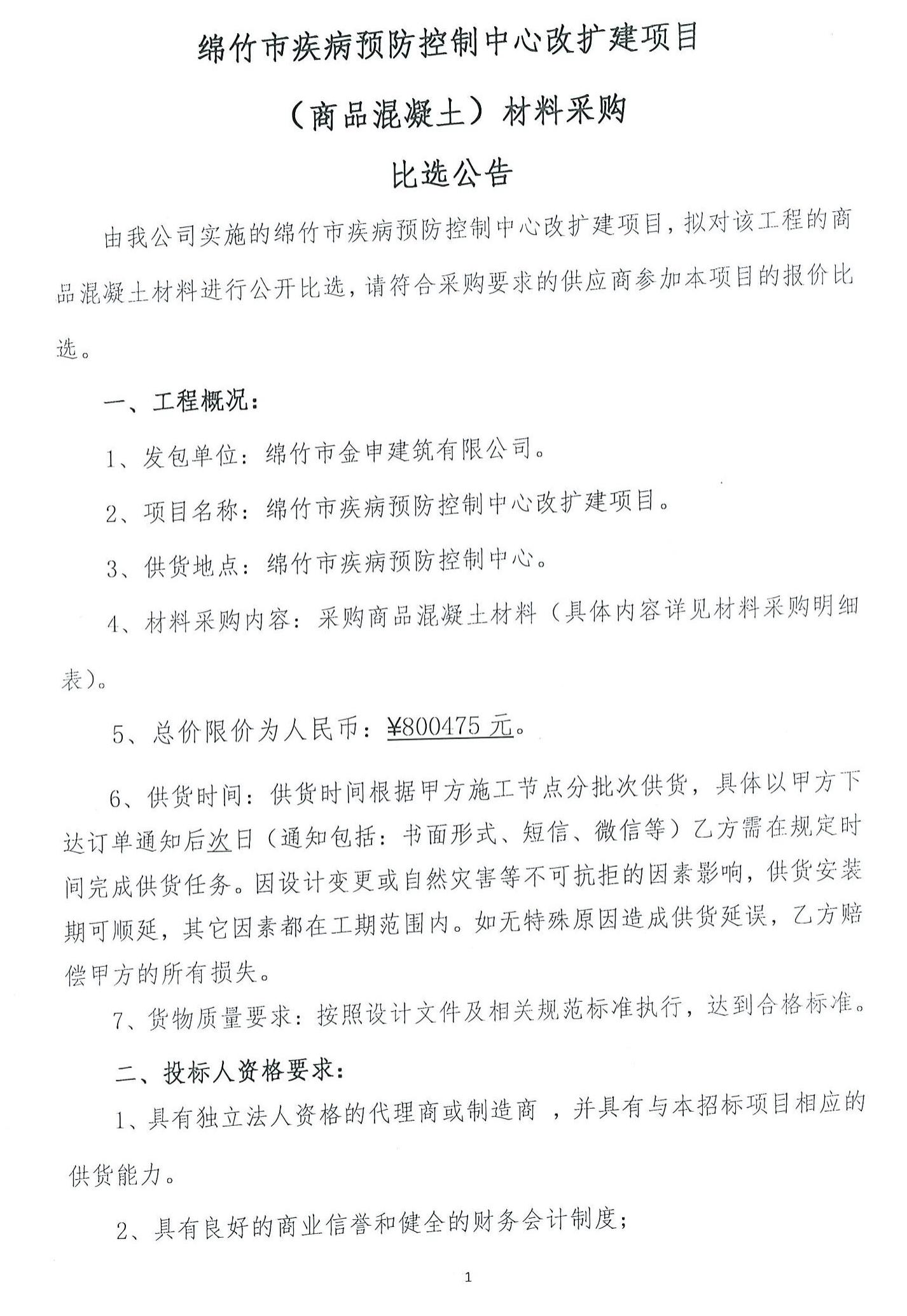 綿竹疾病預防中心改擴建項目(商品混凝土)材料采購比選公告