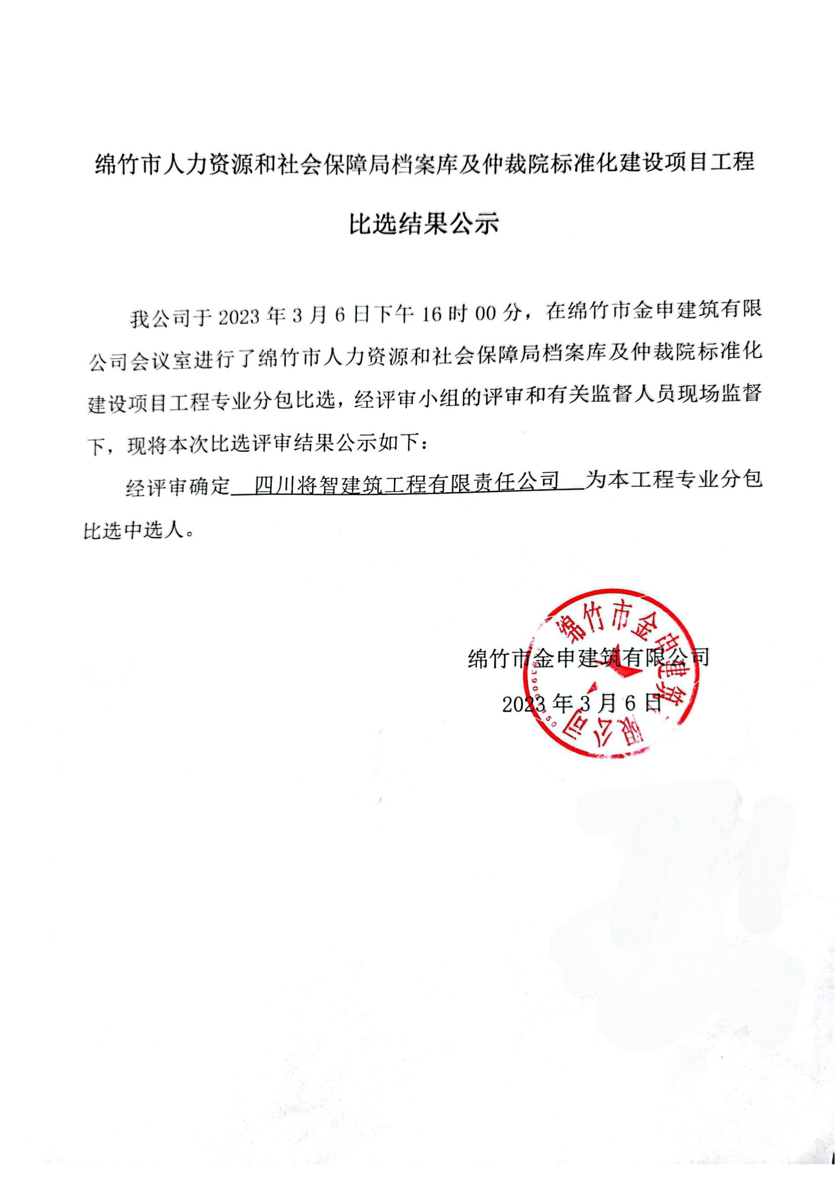 綿竹人社局檔案庫及仲裁院標(biāo)準(zhǔn)化建設(shè)項(xiàng)目比選結(jié)果公示