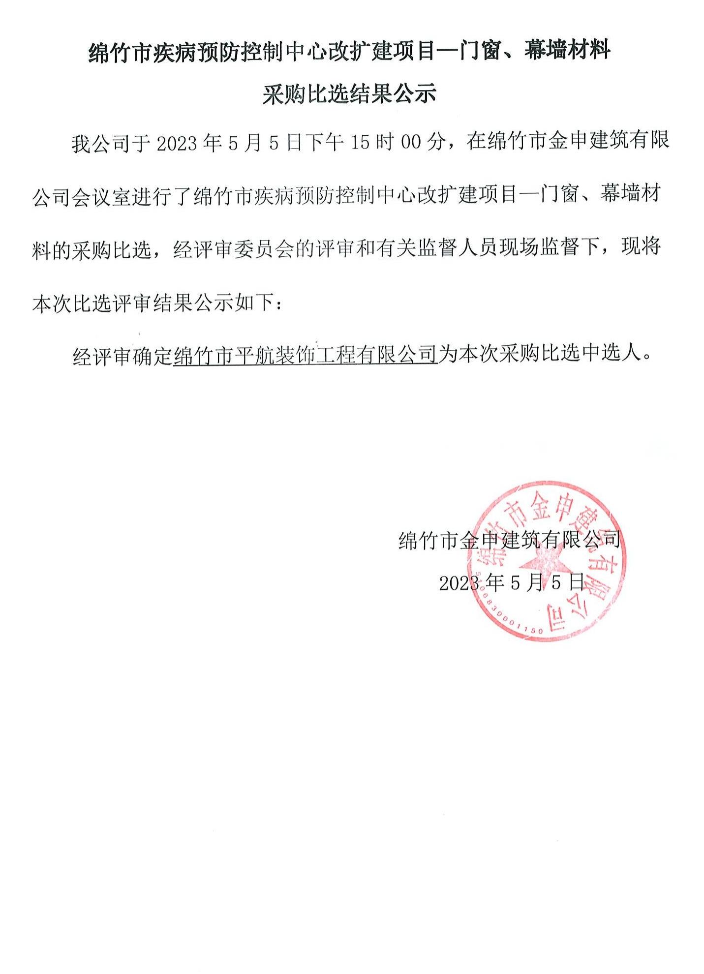 疾病預(yù)防控制中心改擴(kuò)建項(xiàng)目門窗幕墻采購(gòu)比選結(jié)果公示