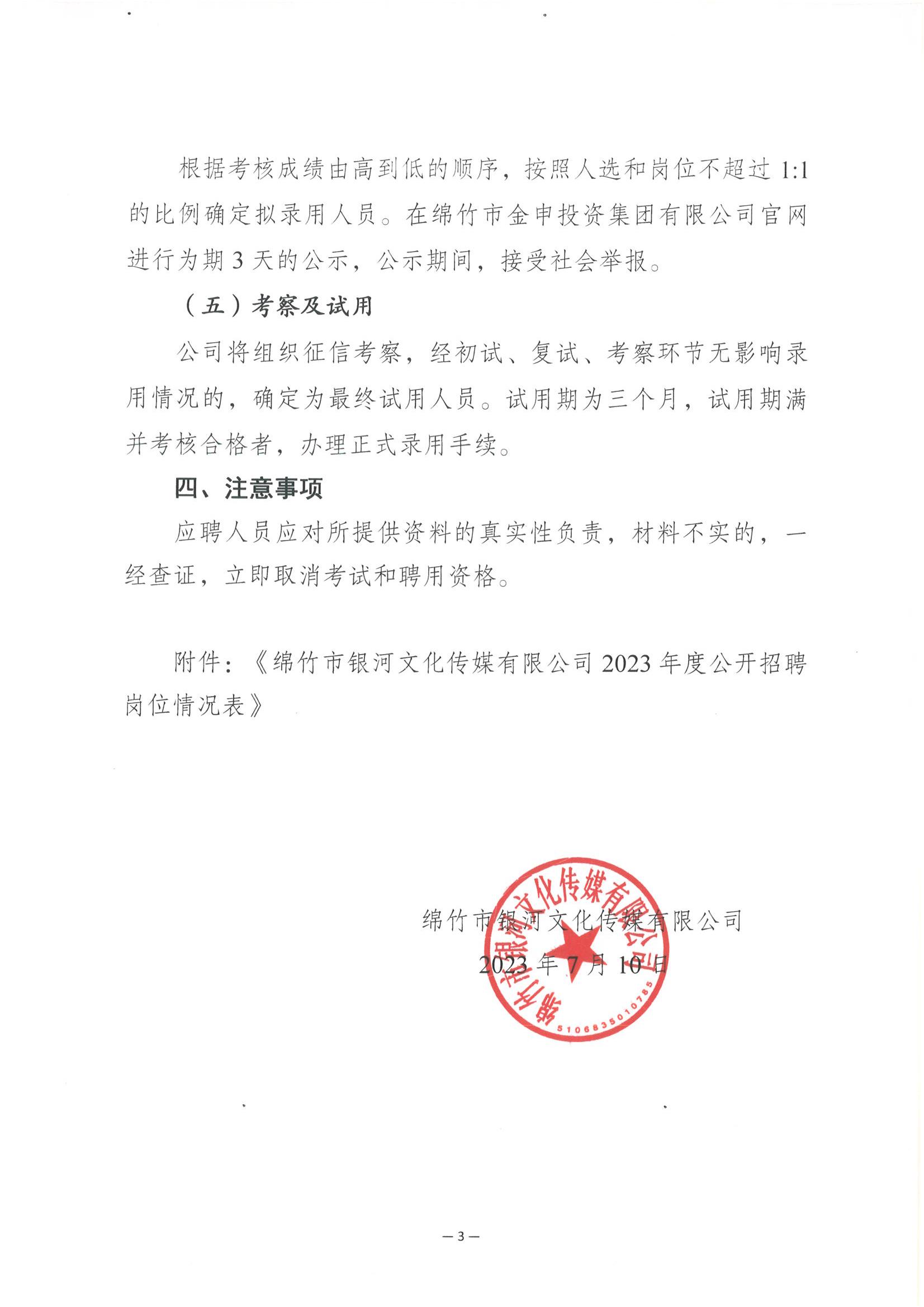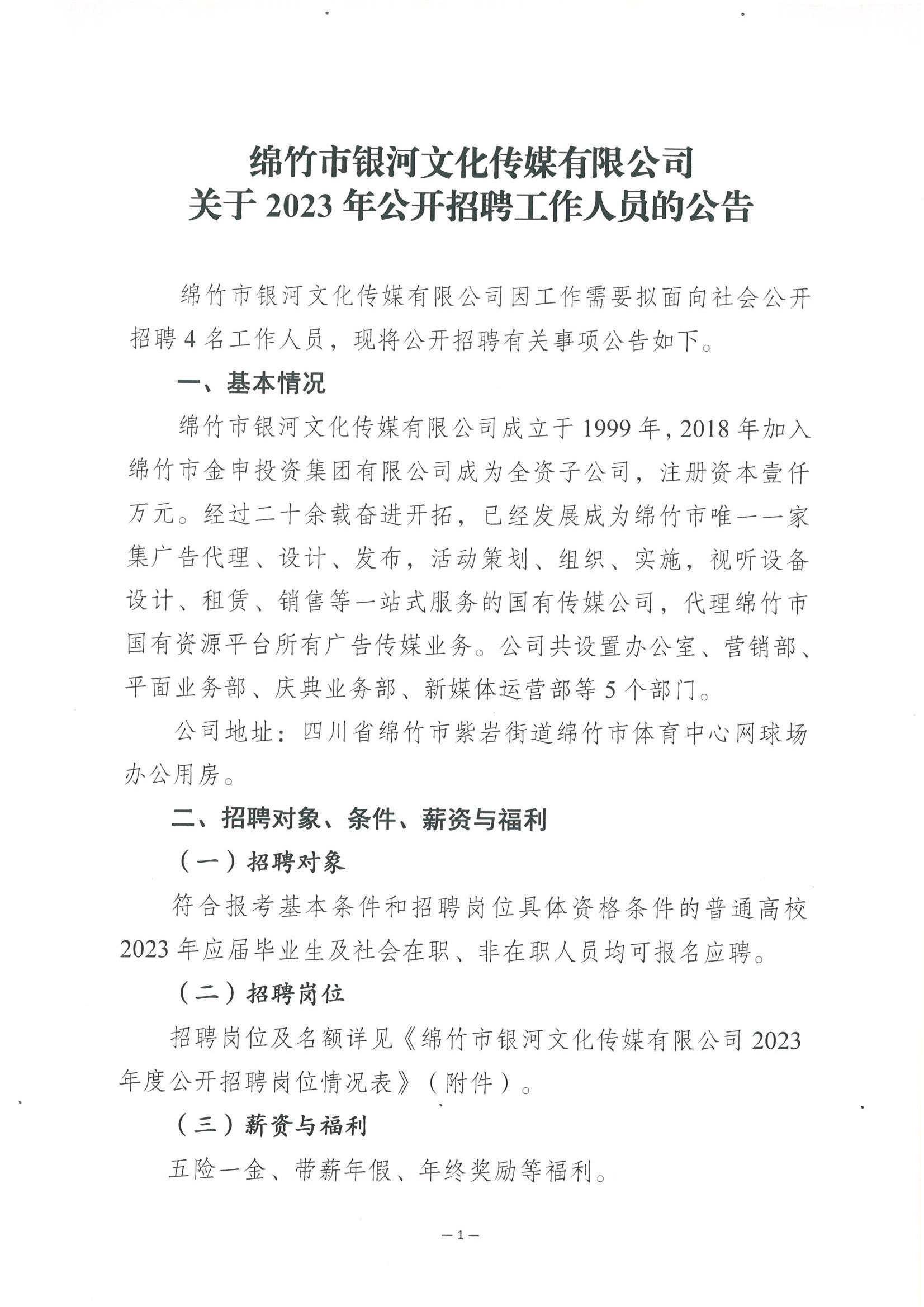 (綿竹市銀河文化傳媒有限公司2023年度公開招聘崗位情況表)