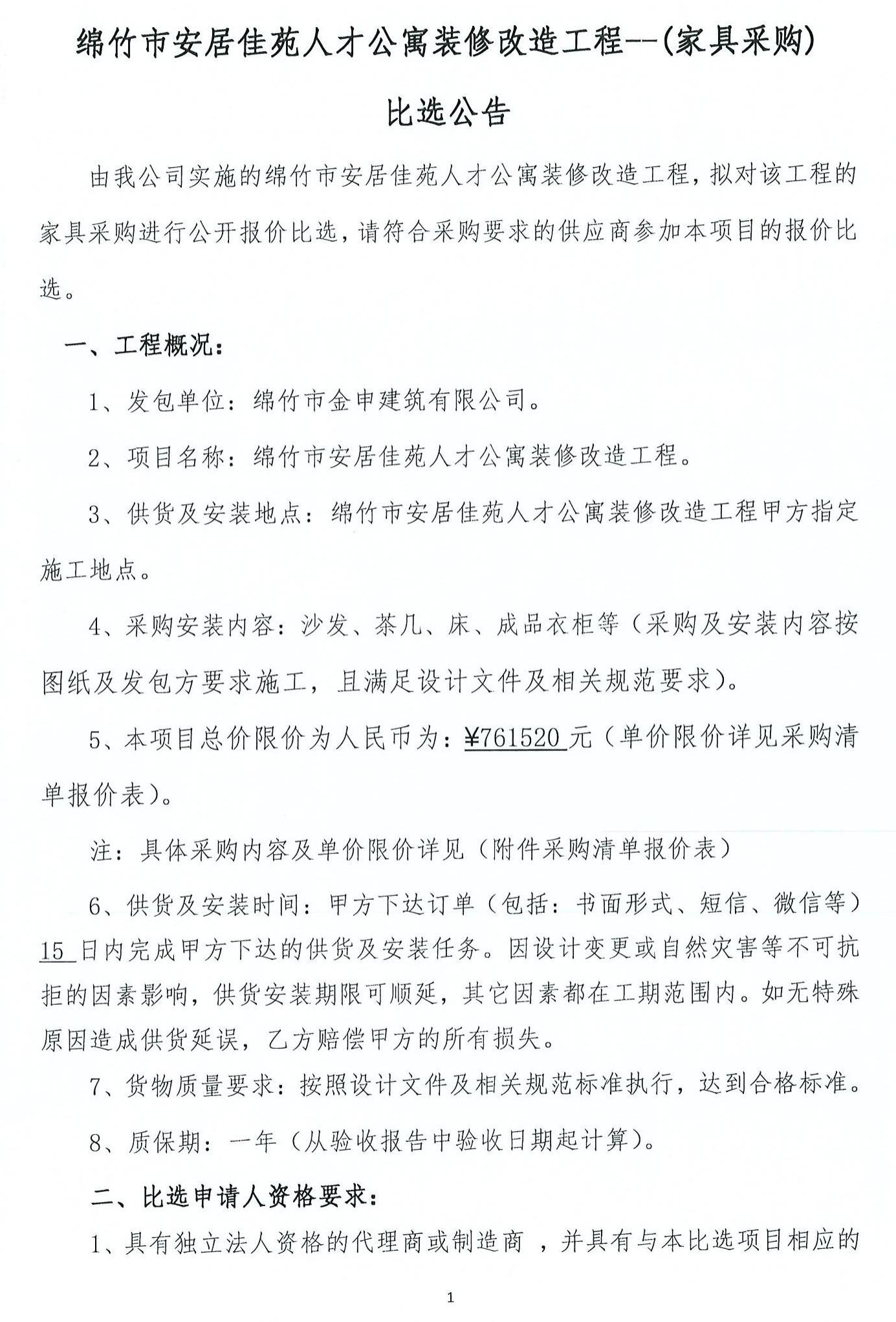 綿竹安居佳苑人才公寓裝修改造工程(家具采購(gòu))比選公告