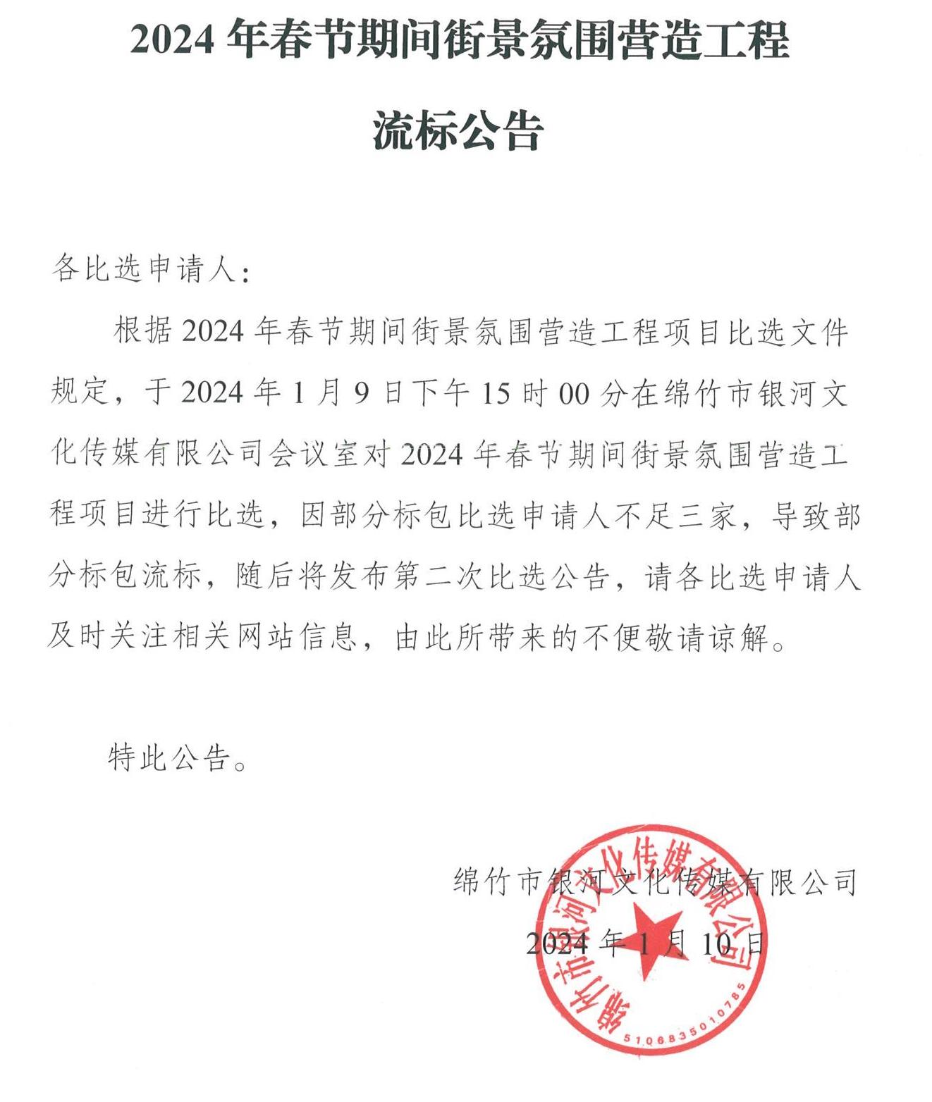 春節(jié)期間街景氛圍營造工程項目部分標包流標公告