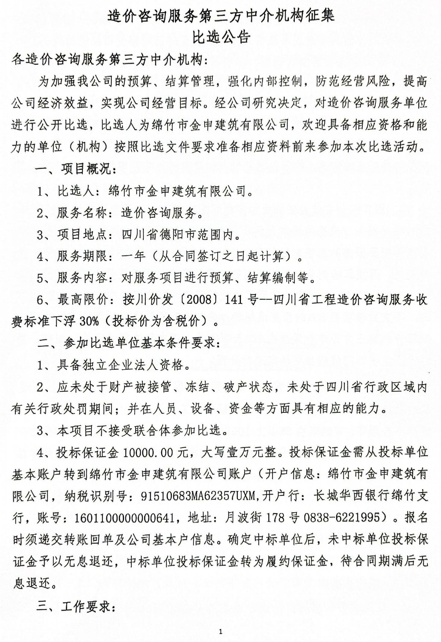 造價(jià)咨詢服務(wù)第三方中介機(jī)構(gòu)征集比選公告