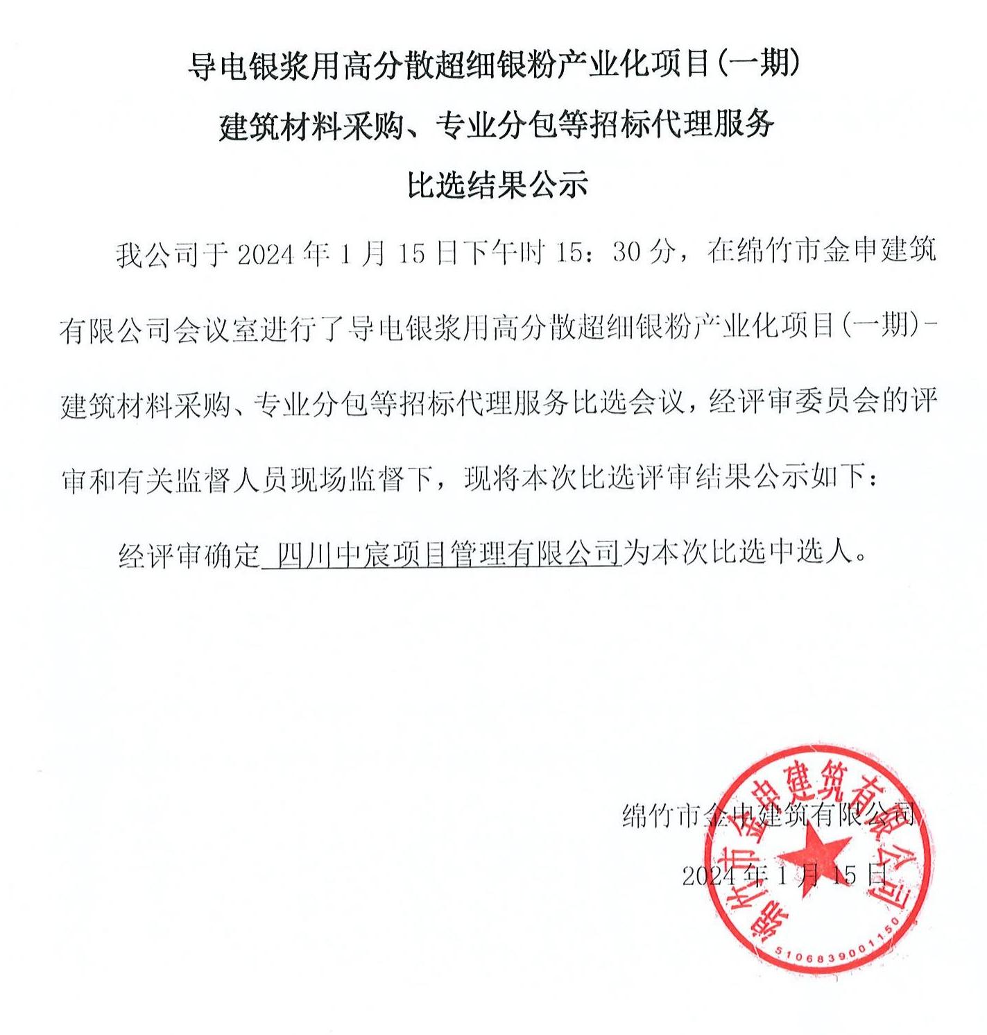 導(dǎo)電銀漿用高分散超細(xì)銀粉項目(一期)(招標(biāo)代理)結(jié)果公示