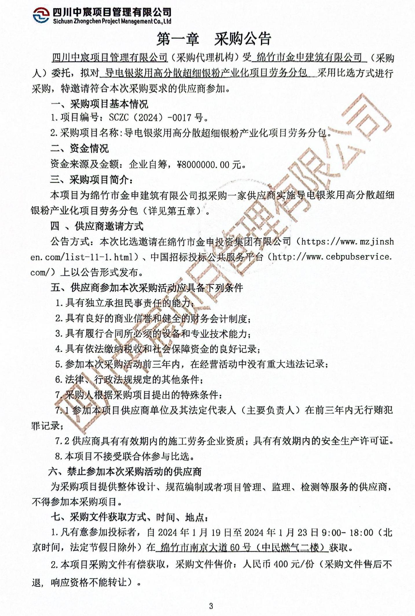 導(dǎo)電銀漿用高分散超細(xì)銀粉產(chǎn)業(yè)化項(xiàng)目勞務(wù)分包比選公告
