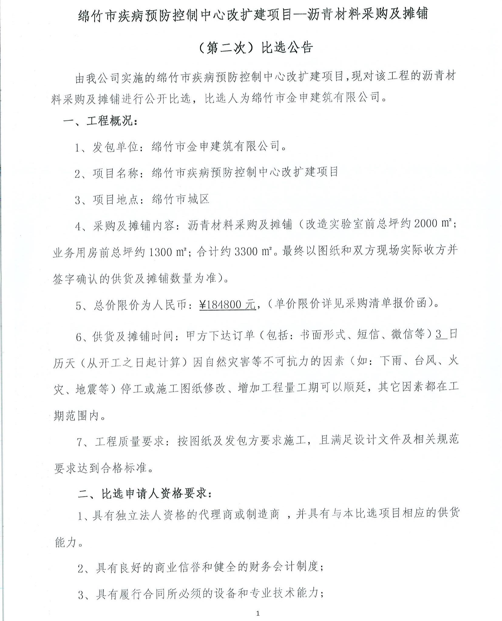 綿竹疾病預(yù)防控制中心改擴建項目瀝青材料(第二次)比選公告