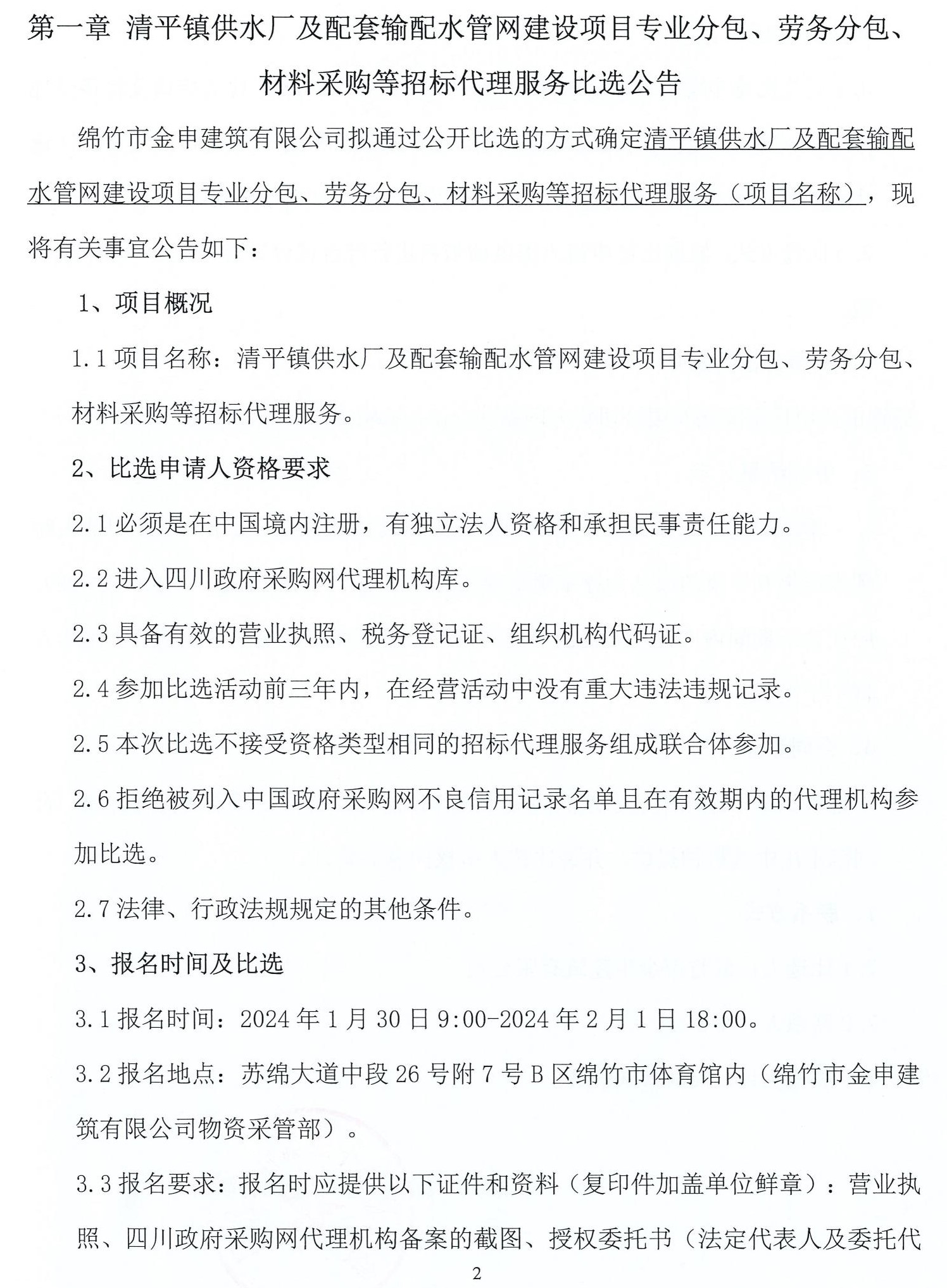 清平鎮(zhèn)供水廠及配套輸配水管網(wǎng)建設(shè)分包項(xiàng)目招標(biāo)比選公告