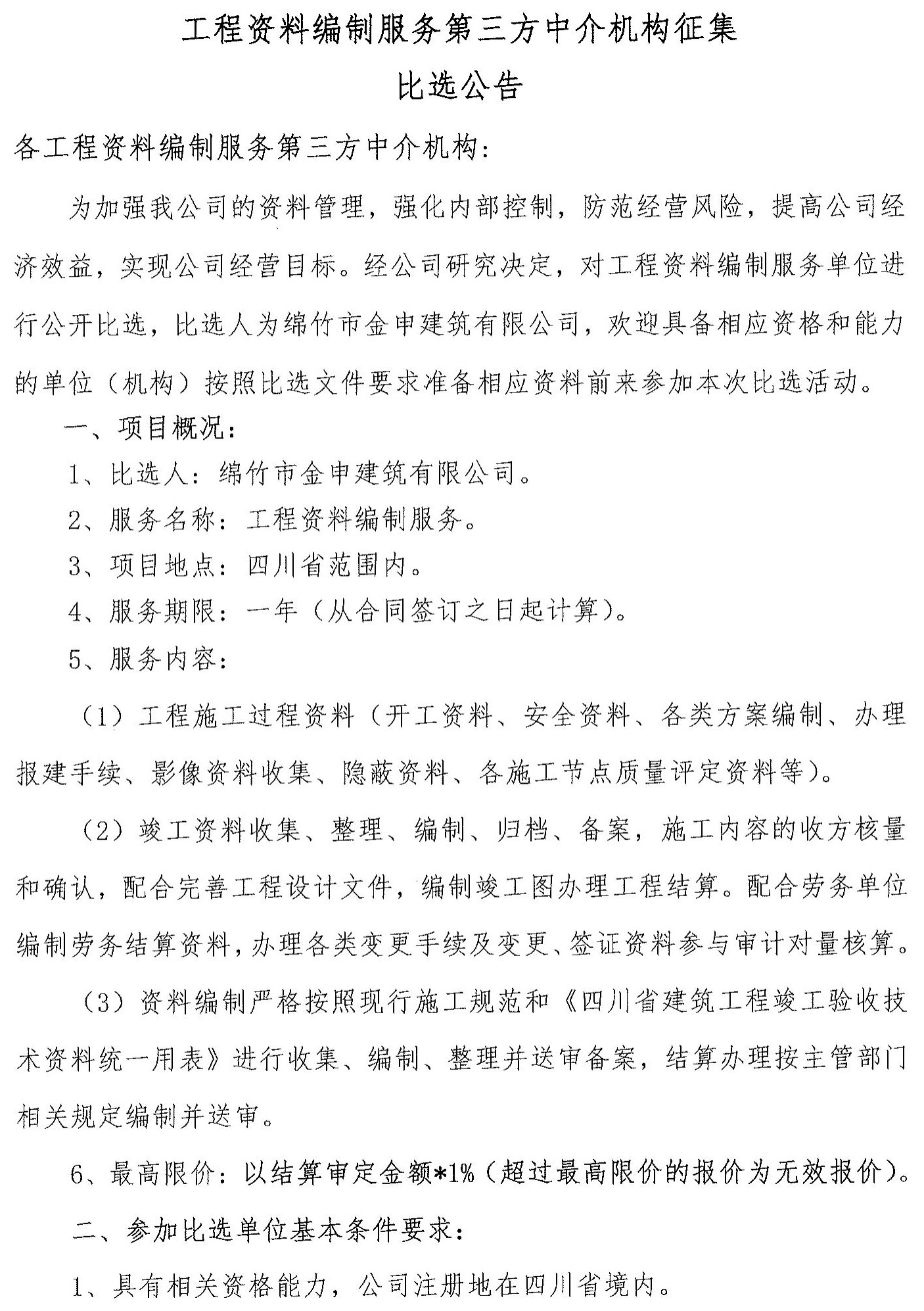 工程資料編制服務(wù)第三方中介機(jī)構(gòu)征集比選公告