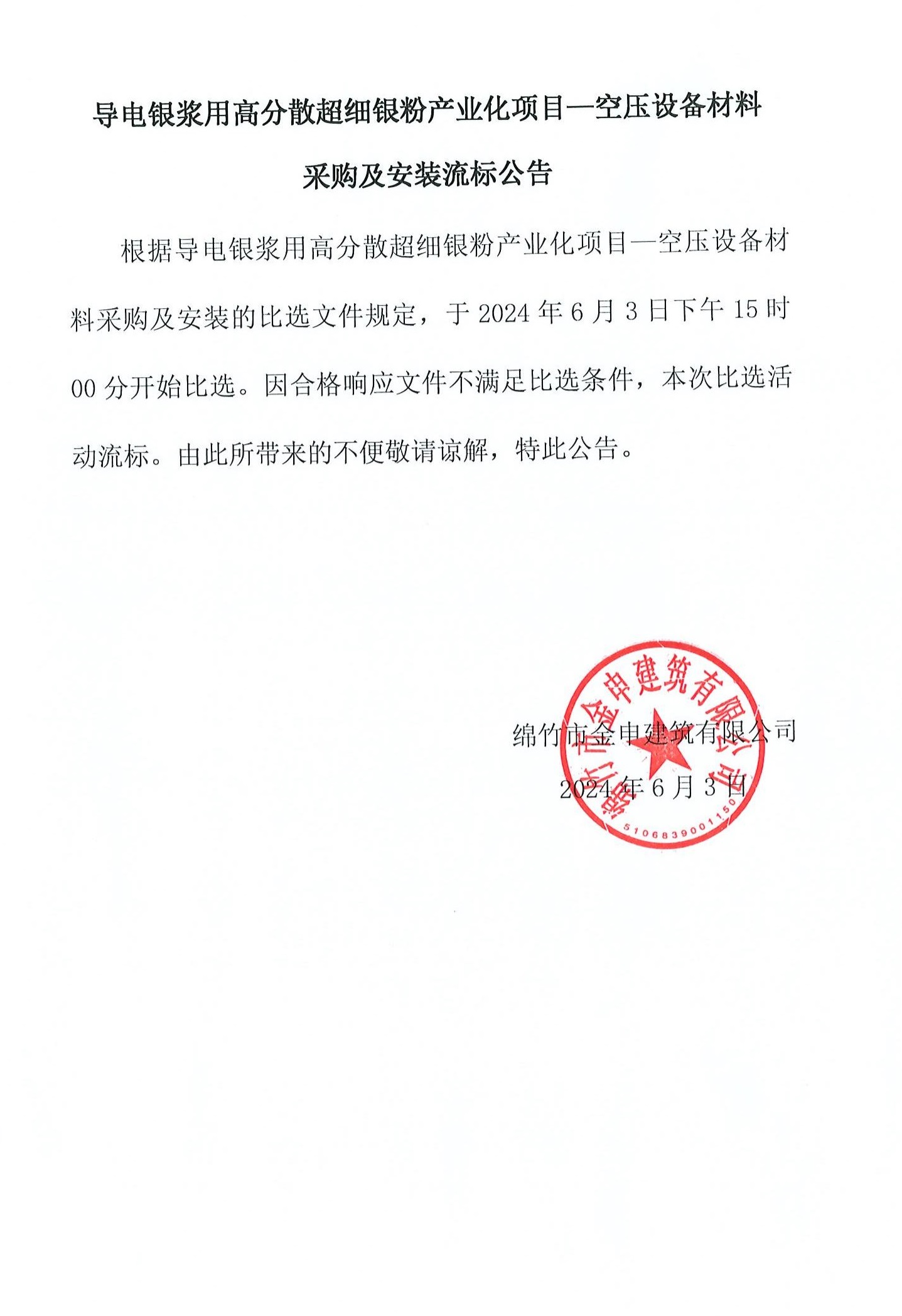 空壓設(shè)備材料 采購及安裝流標(biāo)公告