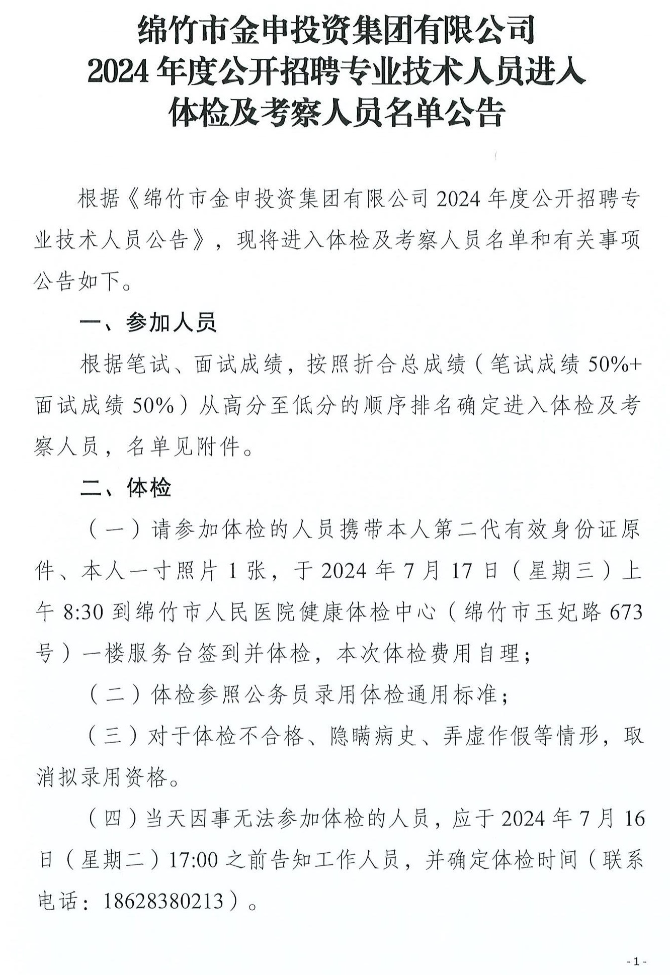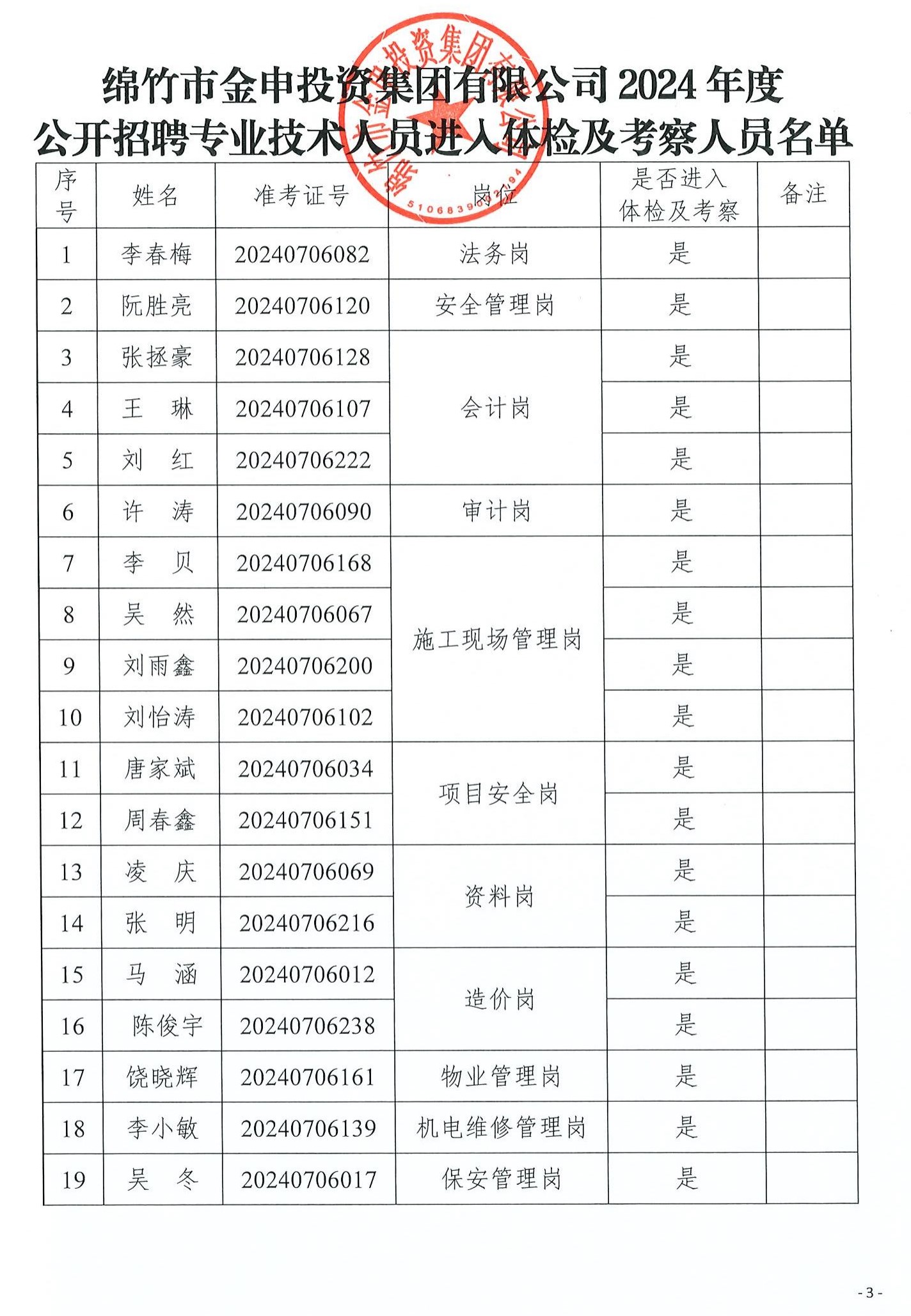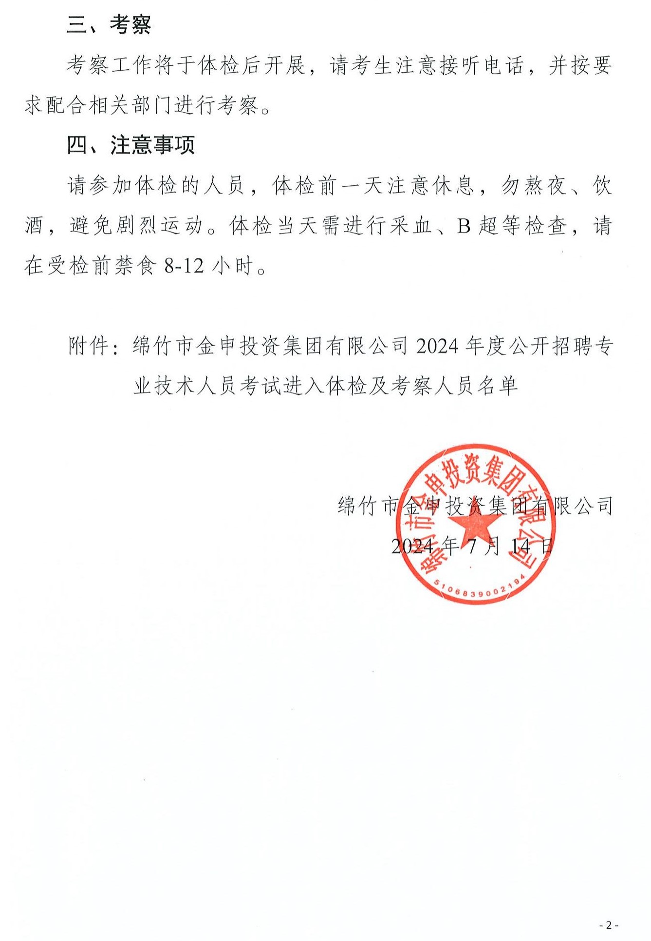 金申集團2024年公開招聘技術(shù)人員進入體檢及考察名單公布