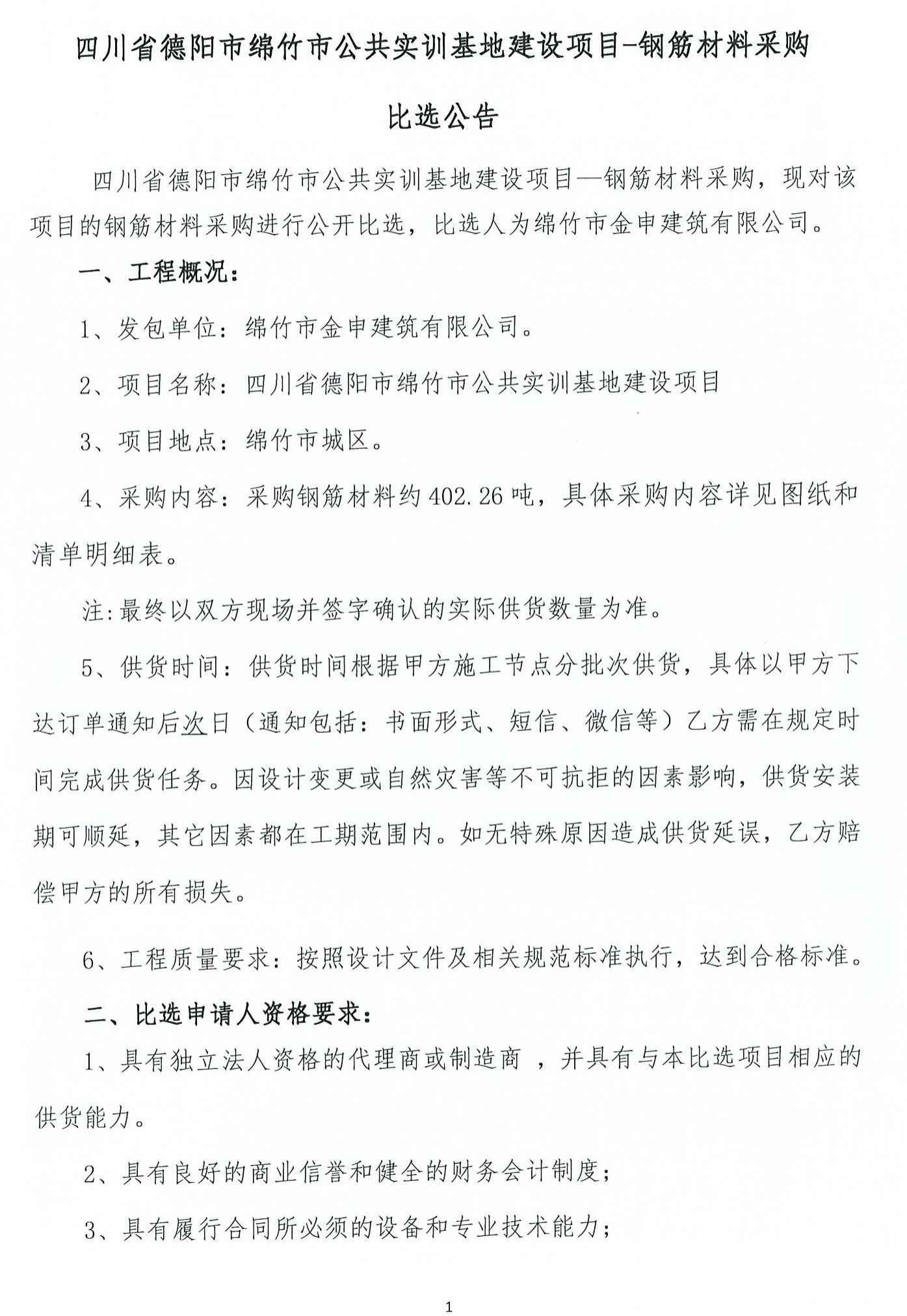 公共實(shí)訓(xùn)基地建設(shè)項(xiàng)目-鋼筋材料采購(gòu)比選公告