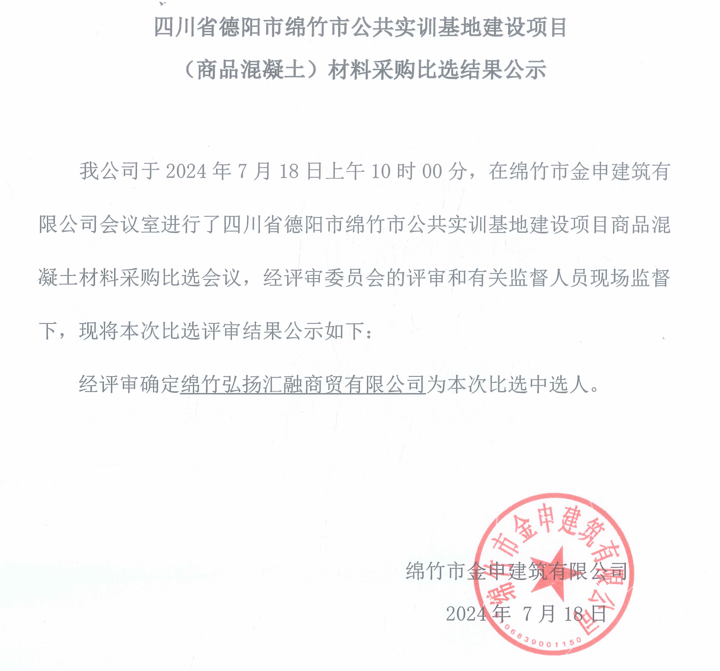 公共實(shí)訓(xùn)基地建設(shè)項(xiàng)目—商品混凝土比選結(jié)果公示