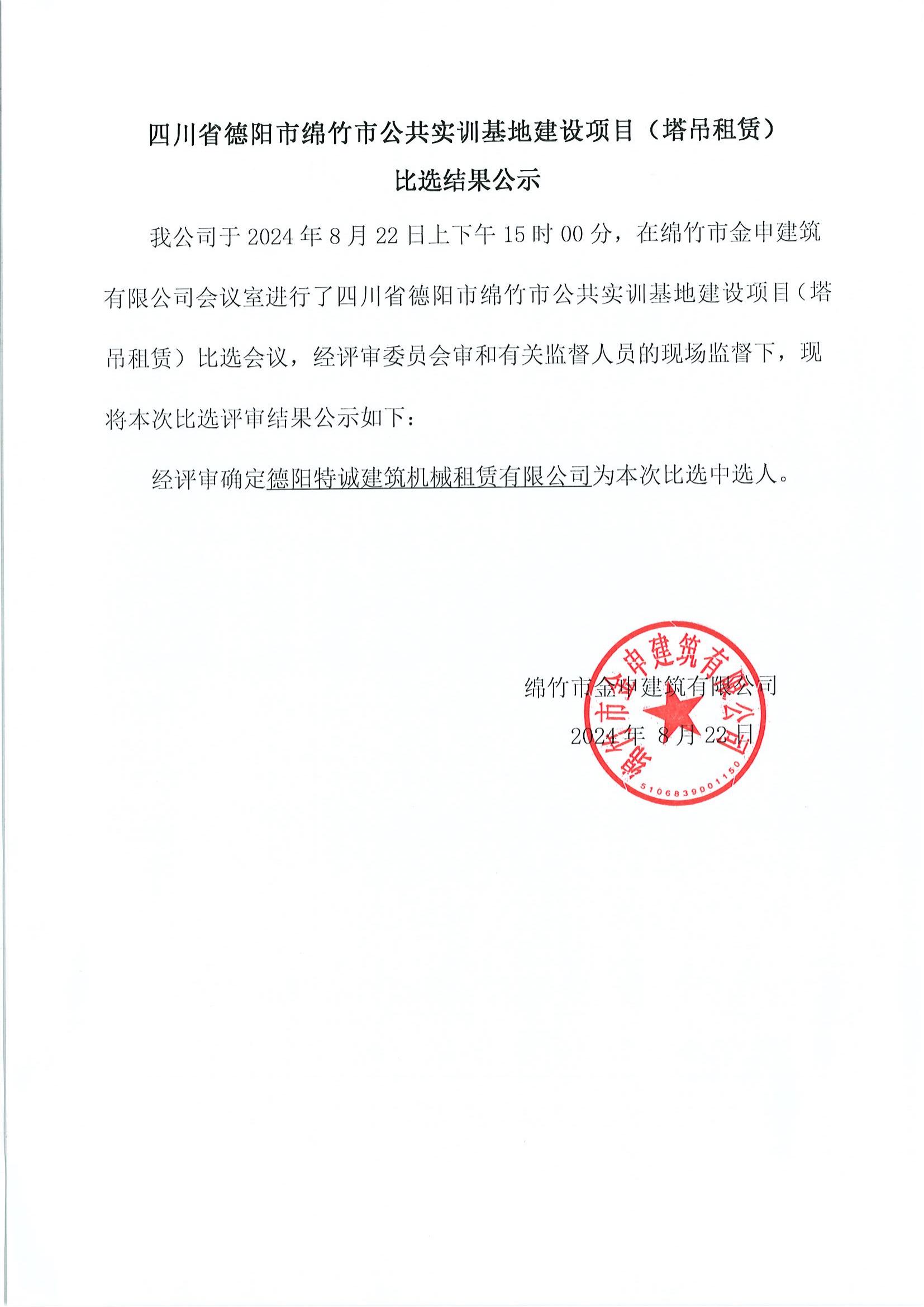實訓基地項目塔吊租賃比選結(jié)果公示