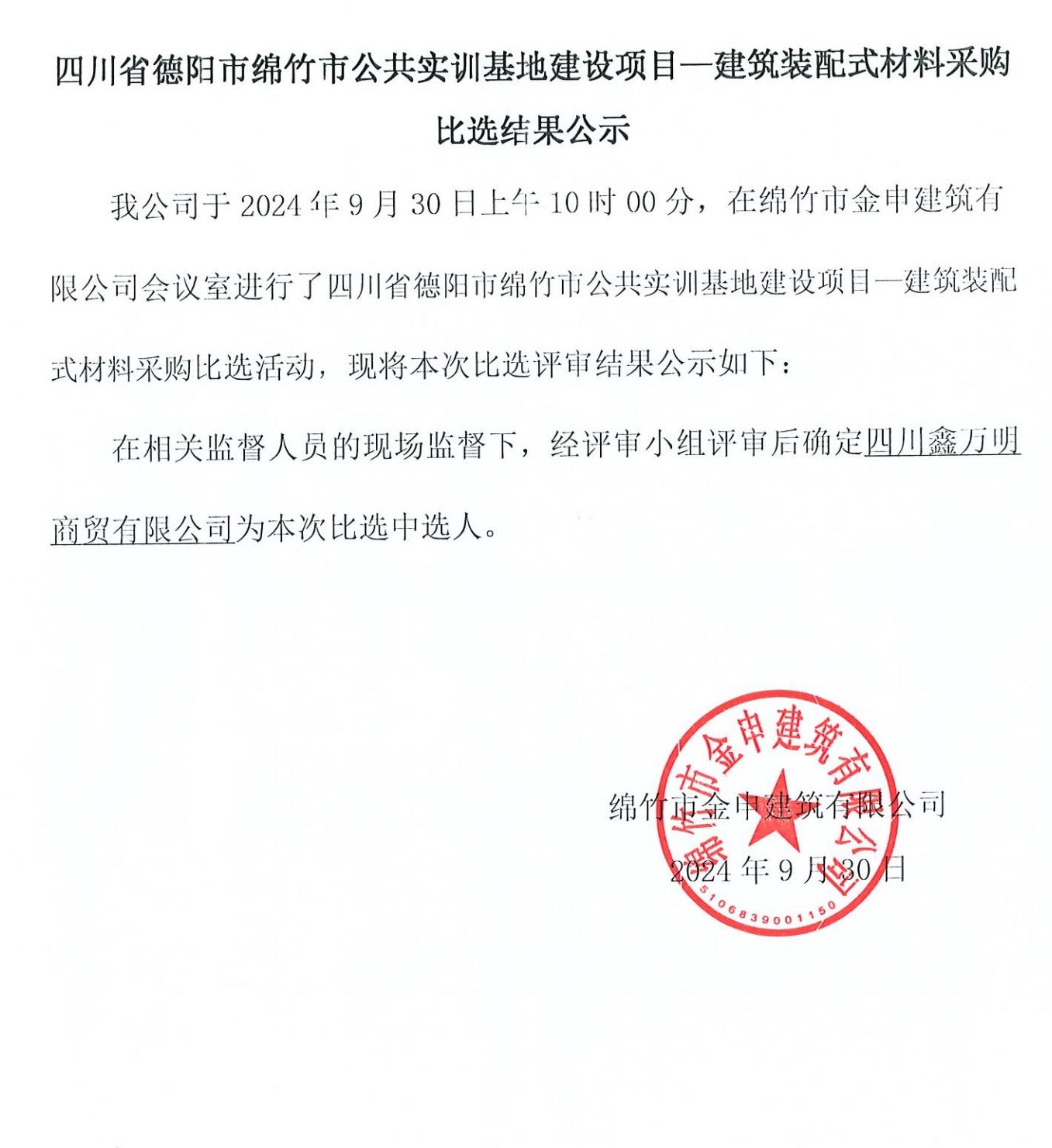 公共實(shí)訓(xùn)基地(裝配式建筑材料)比選結(jié)果公示