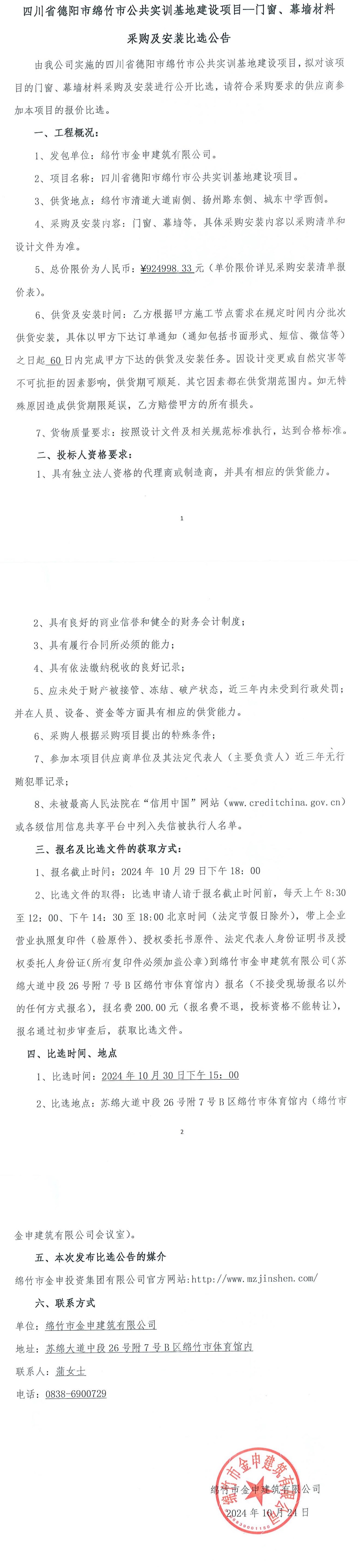實(shí)訓(xùn)基地建設(shè)項(xiàng)目-門窗、幕墻材料采購(gòu)及安裝比選公告