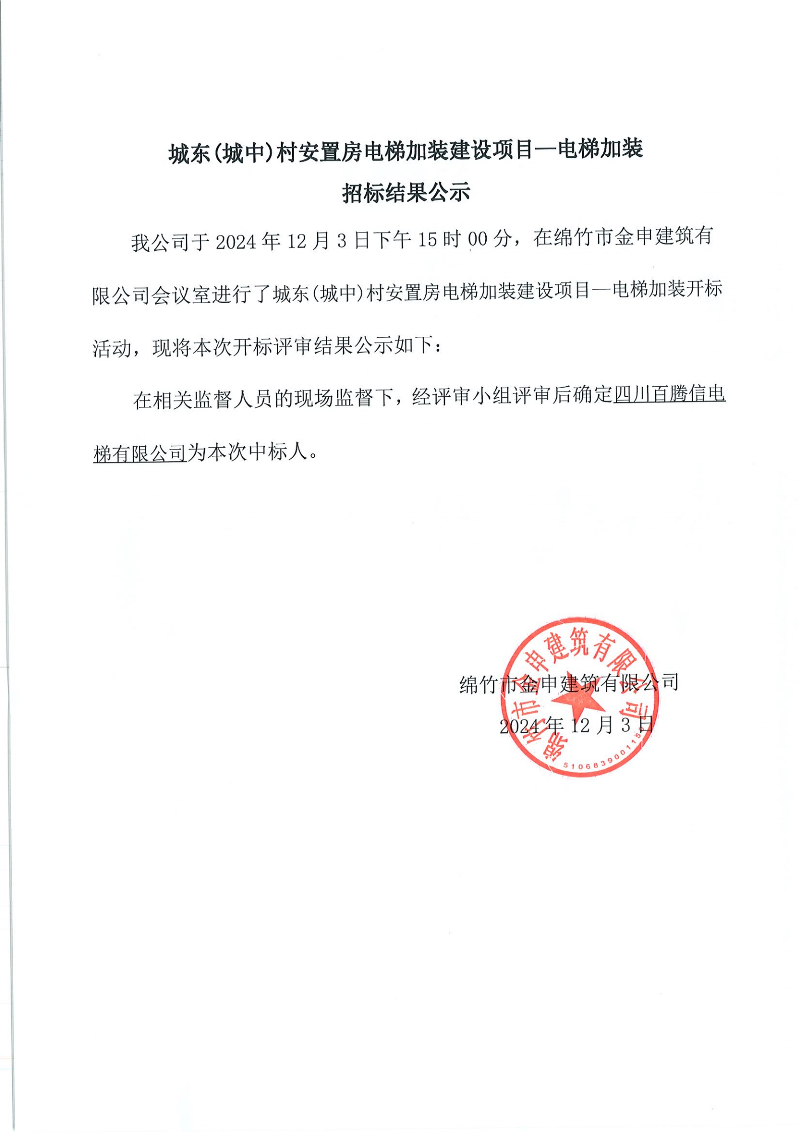 城中村安置房電梯加裝項目—電梯加裝招標結(jié)果公示
