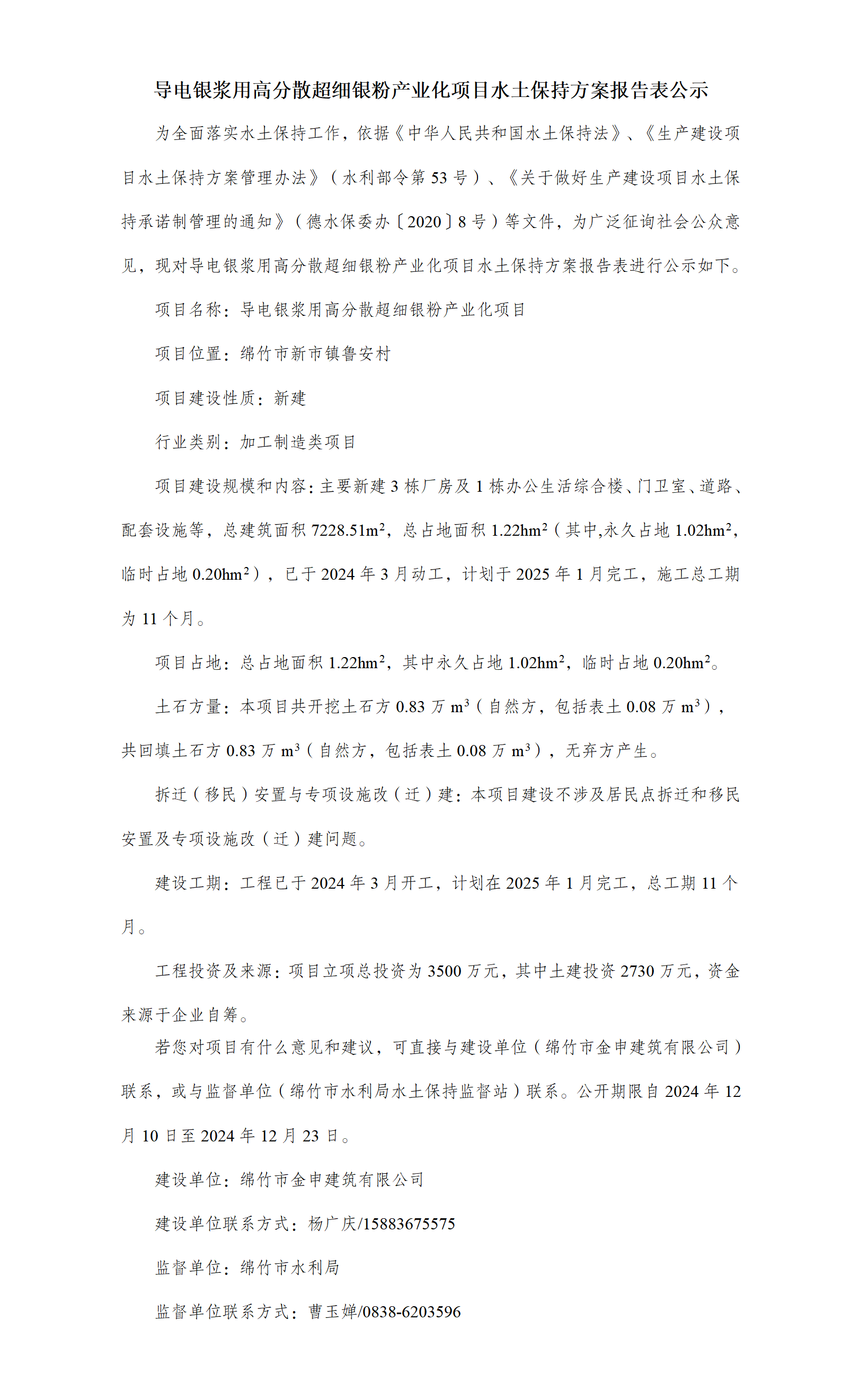 銀粉產(chǎn)業(yè)化項(xiàng)目水土保持方案報(bào)告表公示