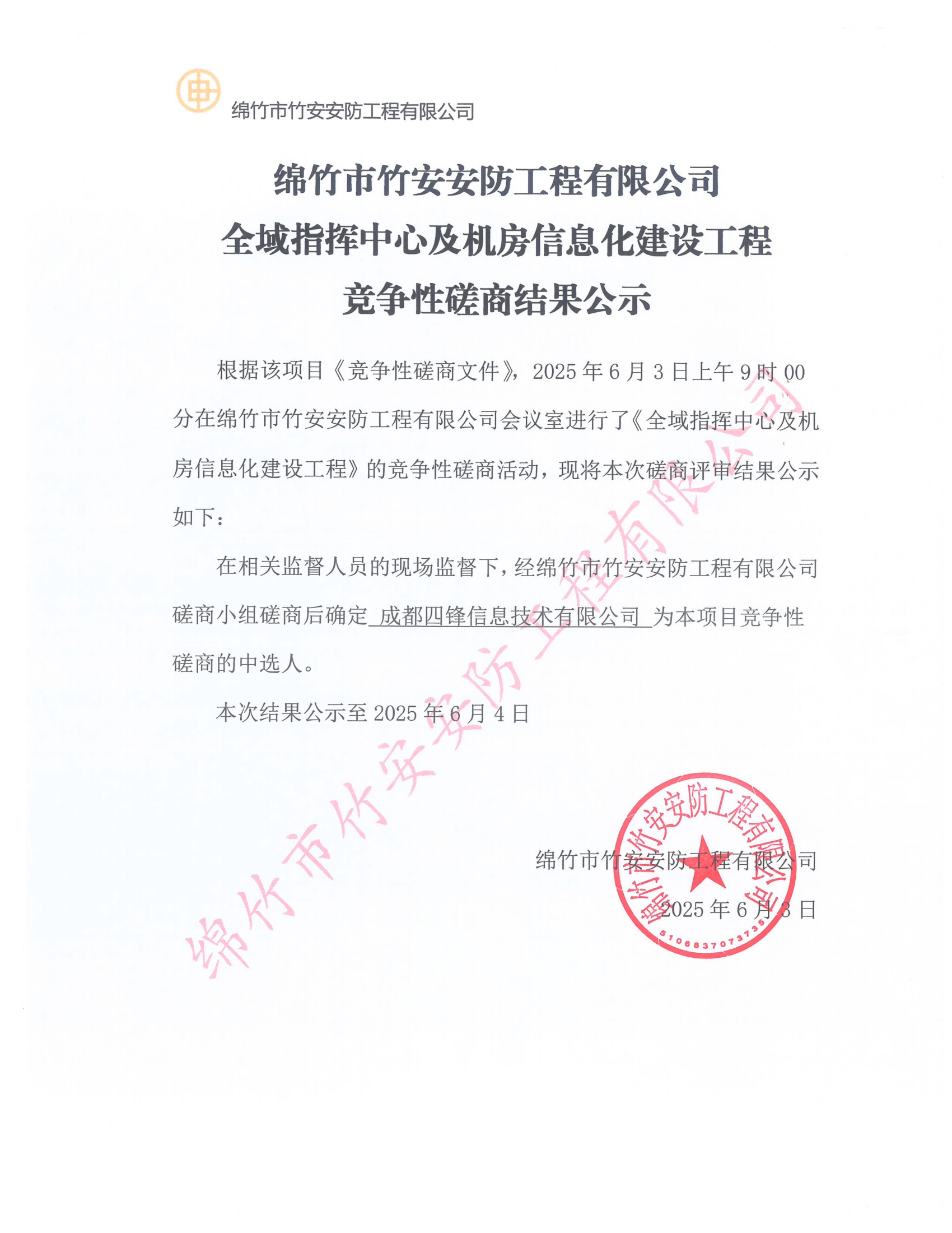 全域指揮中心及機(jī)房信息化建設(shè)工程競(jìng)爭(zhēng)性磋商結(jié)果公示