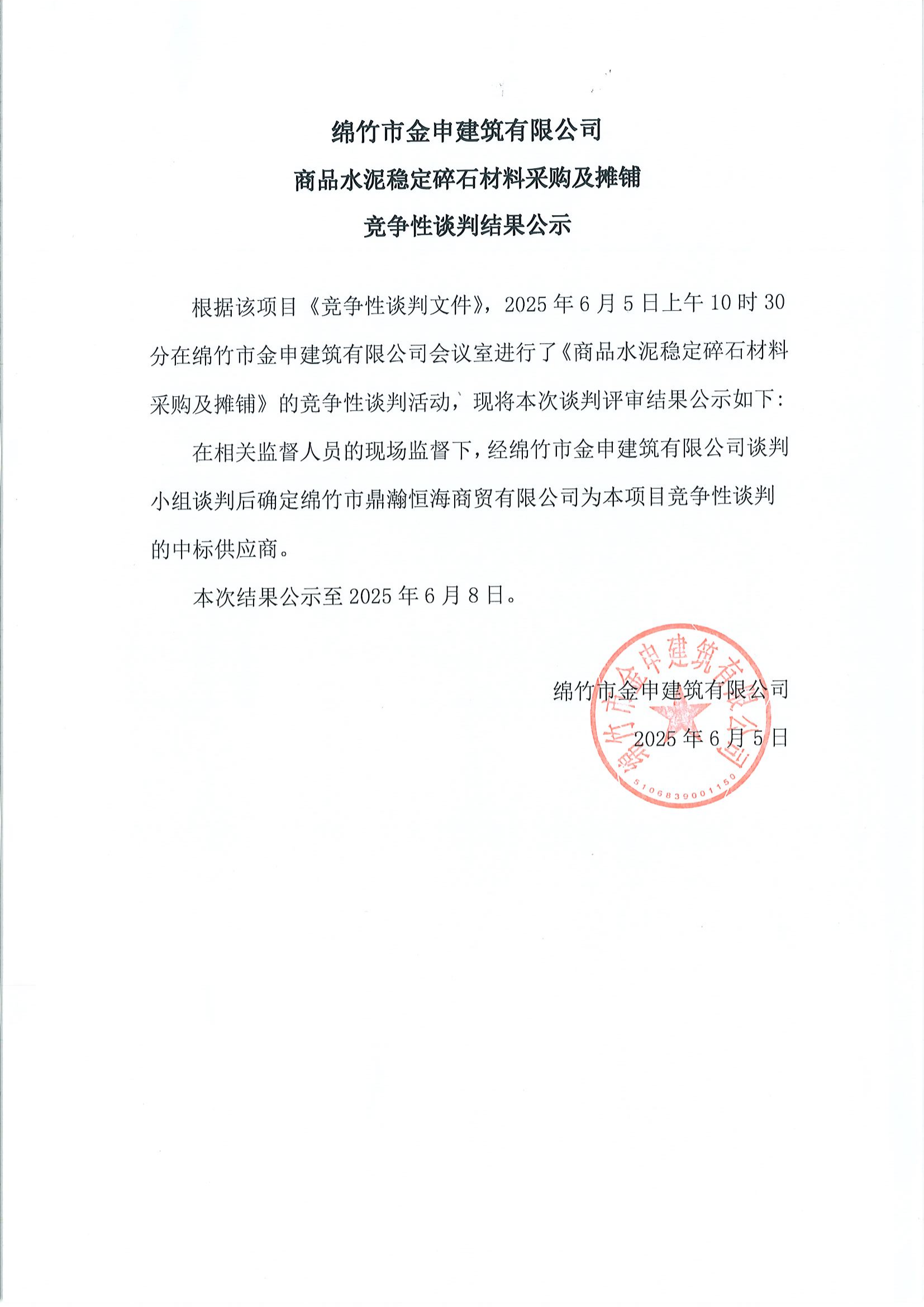 商品水泥穩(wěn)定碎石材料采購(gòu)及攤鋪競(jìng)爭(zhēng)性談判結(jié)果公示