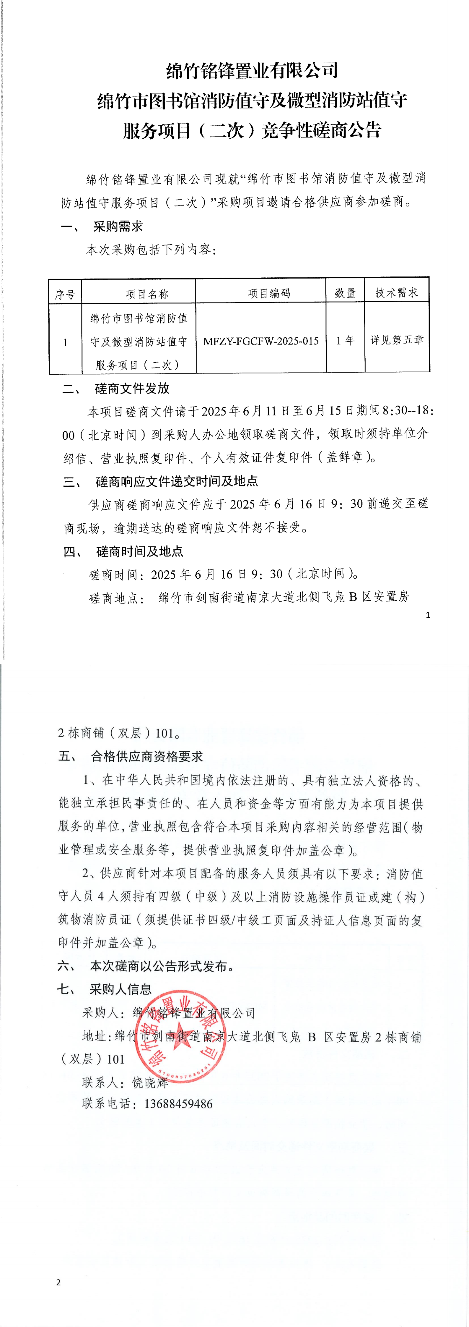 圖書館消防值守及微型消防站值守服務(wù)項(xiàng)目(二次)磋商公告