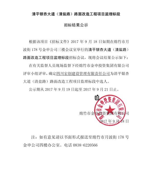 清平銀杏大道路面改造工程項(xiàng)目監(jiān)理標(biāo)段招標(biāo)結(jié)果公示