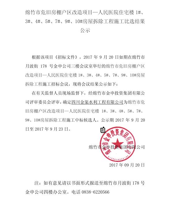 人民醫(yī)院住宅樓房屋拆除工程施工比選結(jié)果公示