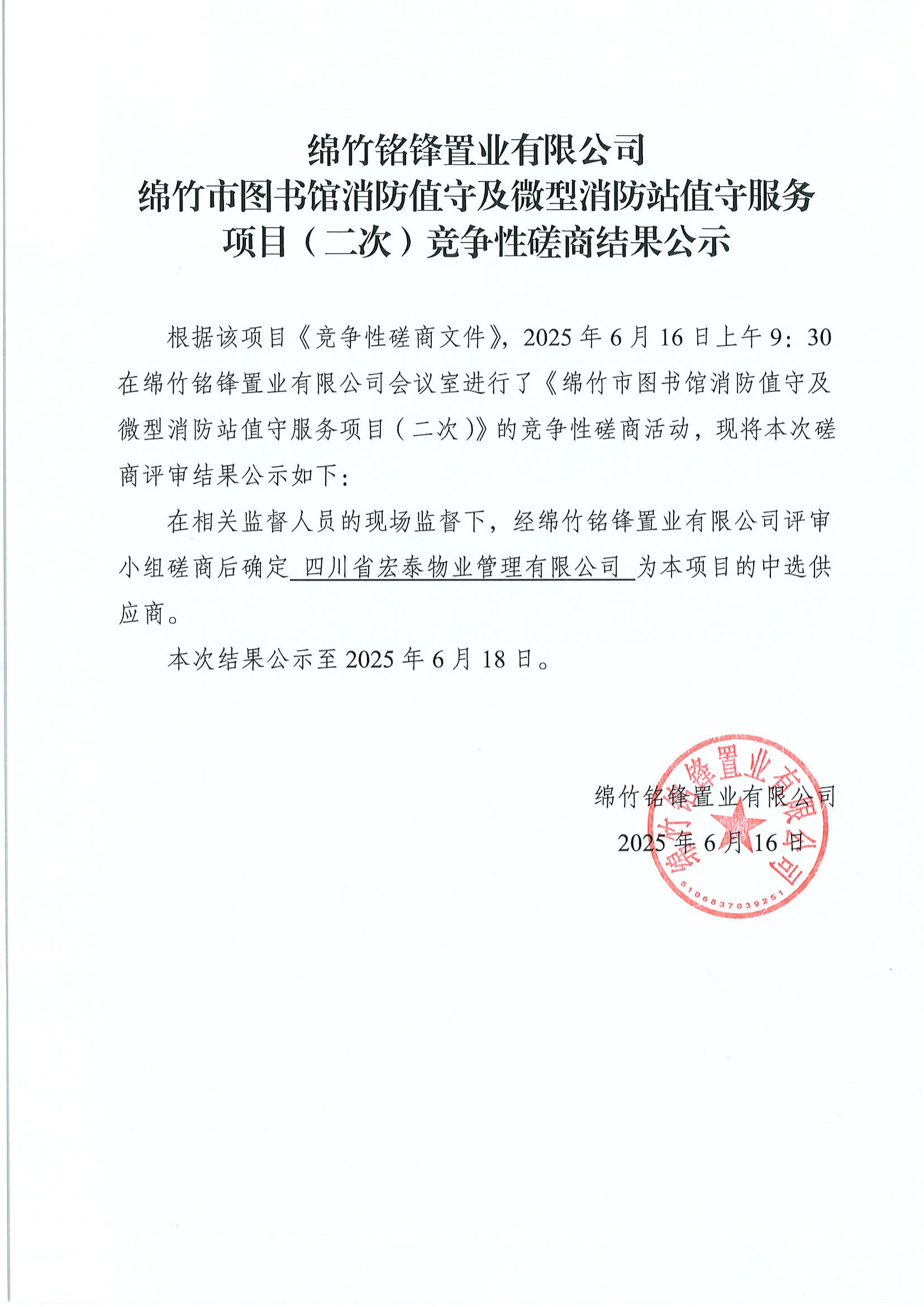 圖書館消防及微型消防站值守服務(wù)項目(二次)磋商結(jié)果公示