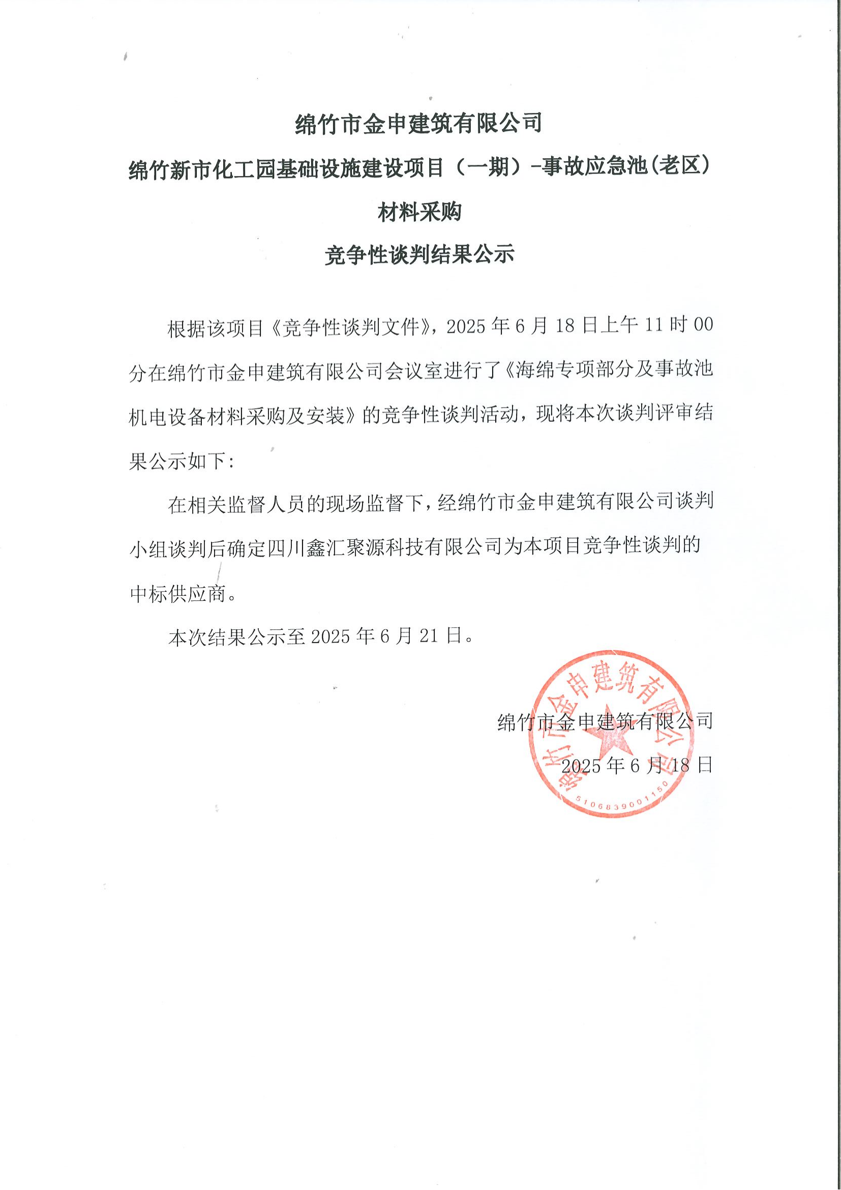 事故應(yīng)急池(老區(qū))材料采購競爭性談判結(jié)果公示