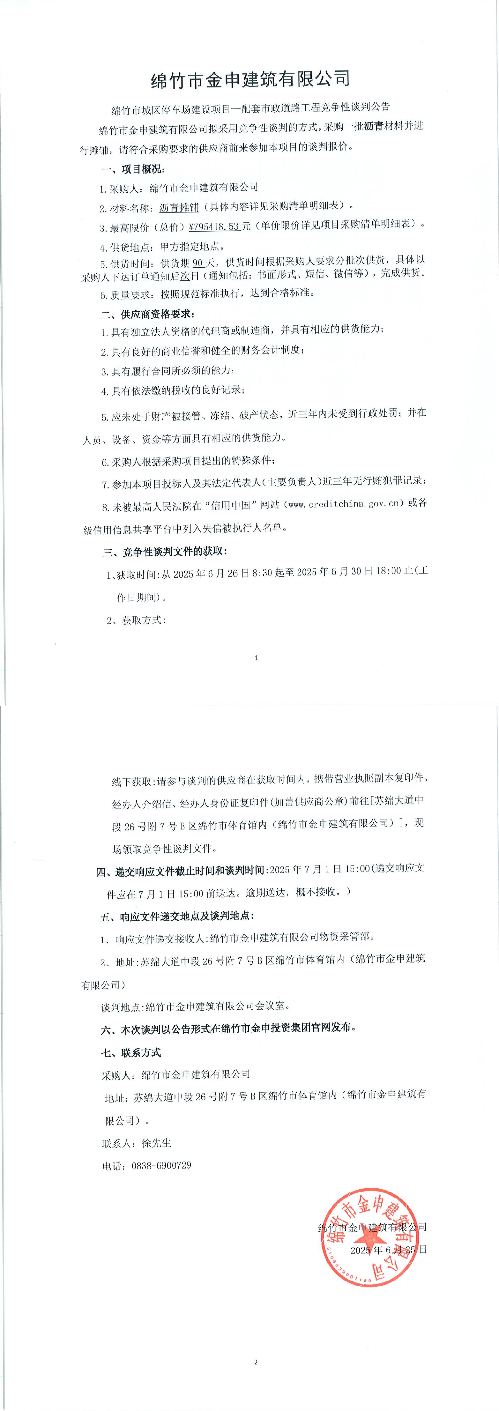 綿竹市城區(qū)停車場建設項目—(瀝青攤鋪)競爭性談判公告