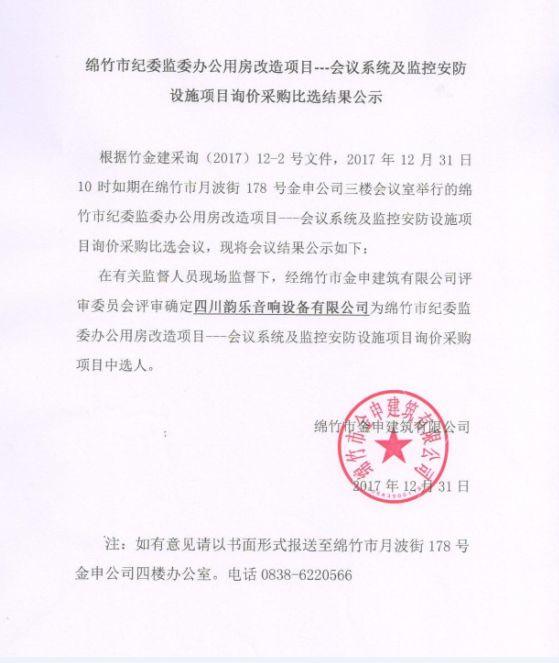 市紀(jì)委監(jiān)委辦公樓---會(huì)議系統(tǒng)及監(jiān)控安防項(xiàng)目詢(xún)價(jià)結(jié)果公示