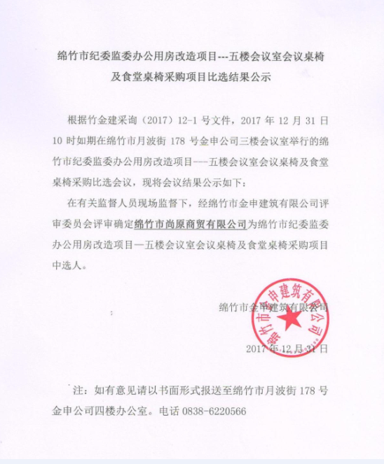 市紀(jì)委監(jiān)委五樓會(huì)議室桌椅及食堂桌椅采購(gòu)比選結(jié)果公示