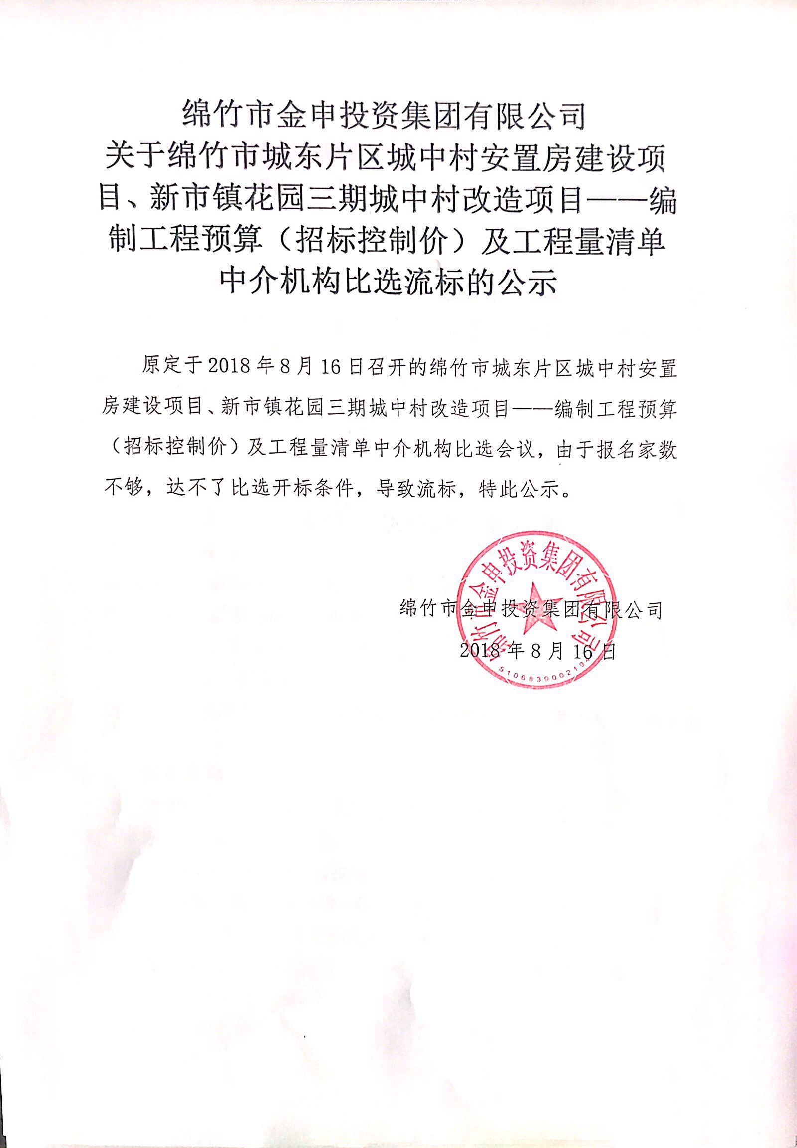 市城東安置房及新市花園三期項目比選流標(biāo)的公示