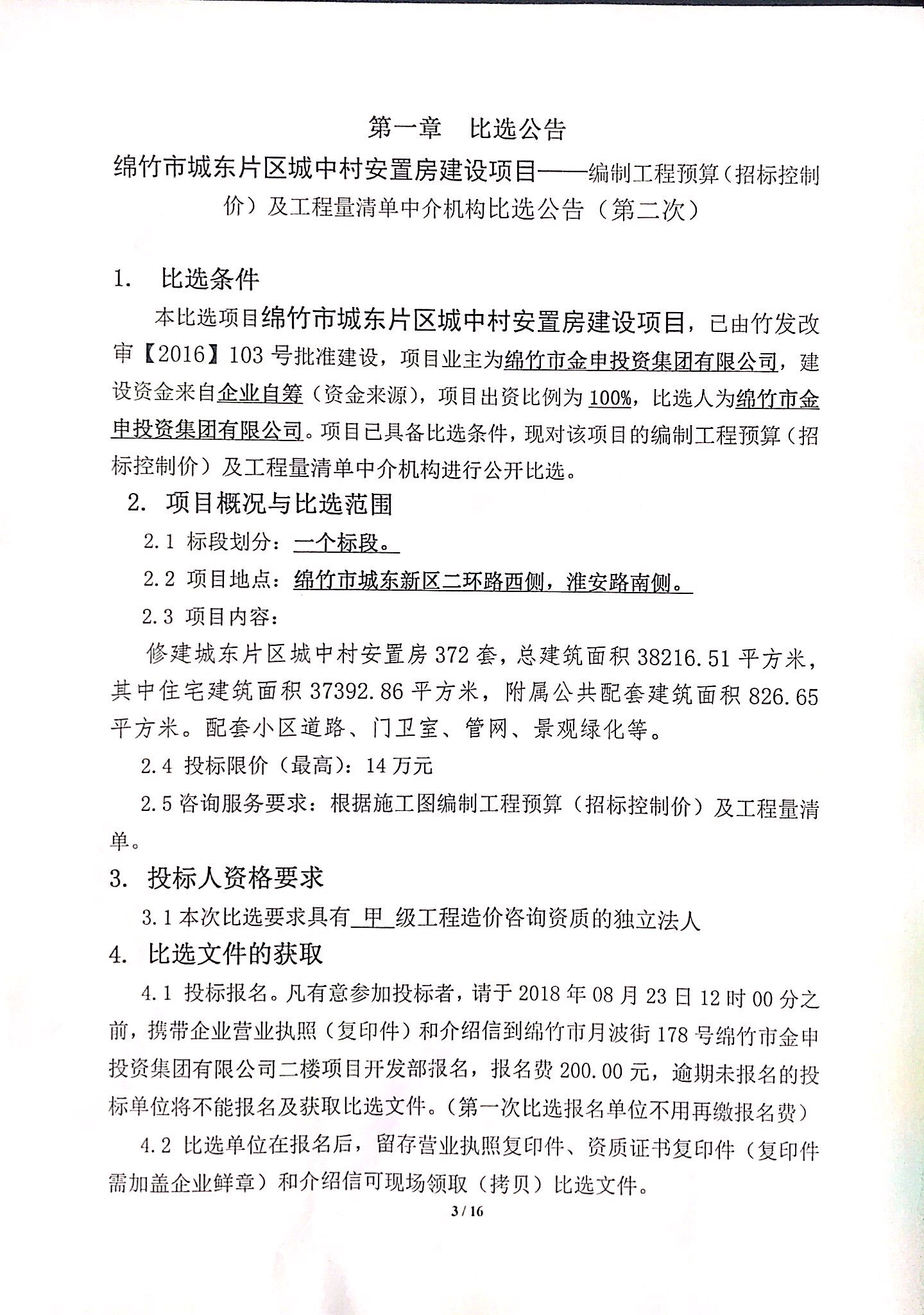 市城東新區(qū)城中村安置房項(xiàng)目比選公告(第二次)