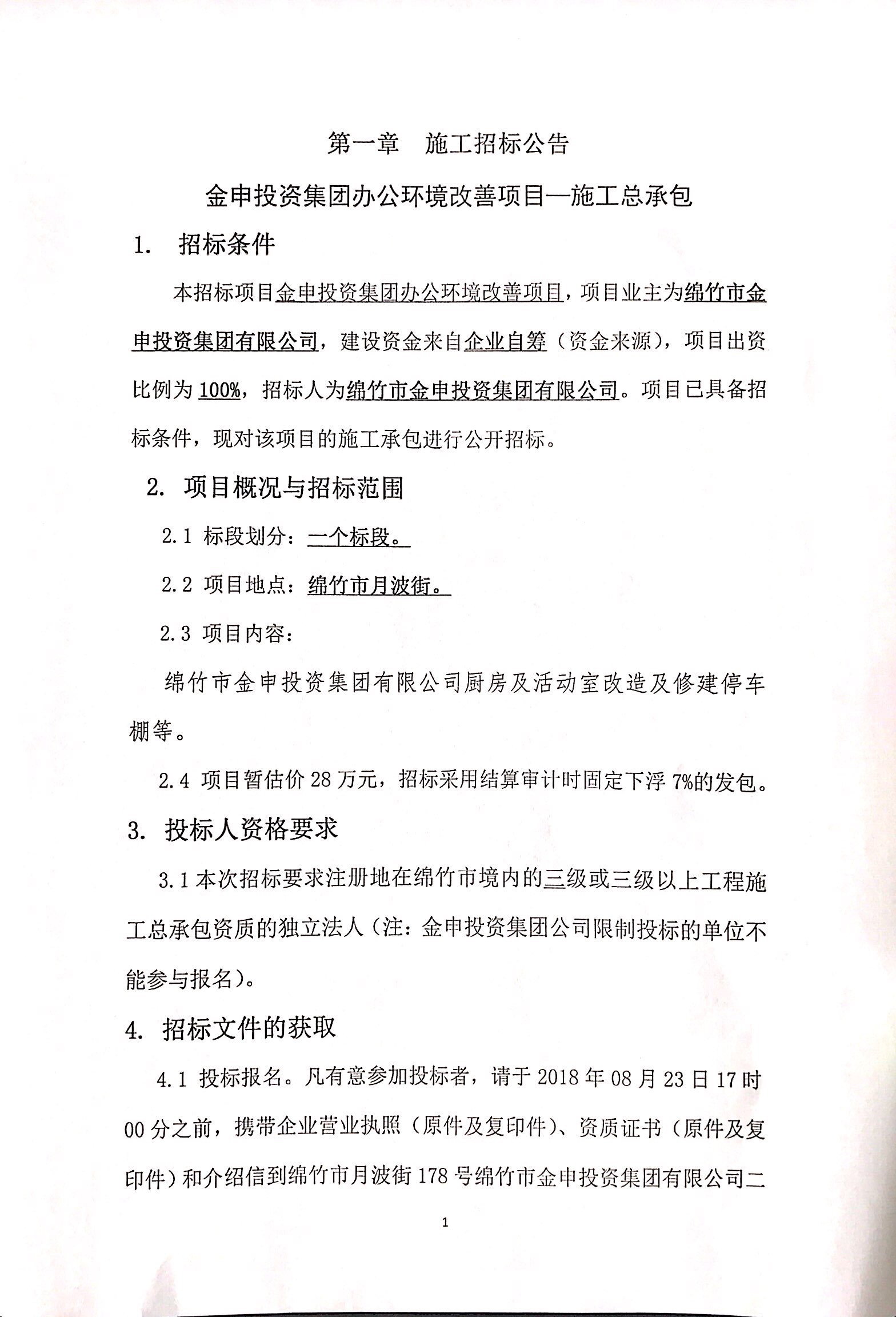 集團辦公環(huán)境改善項目招標公告