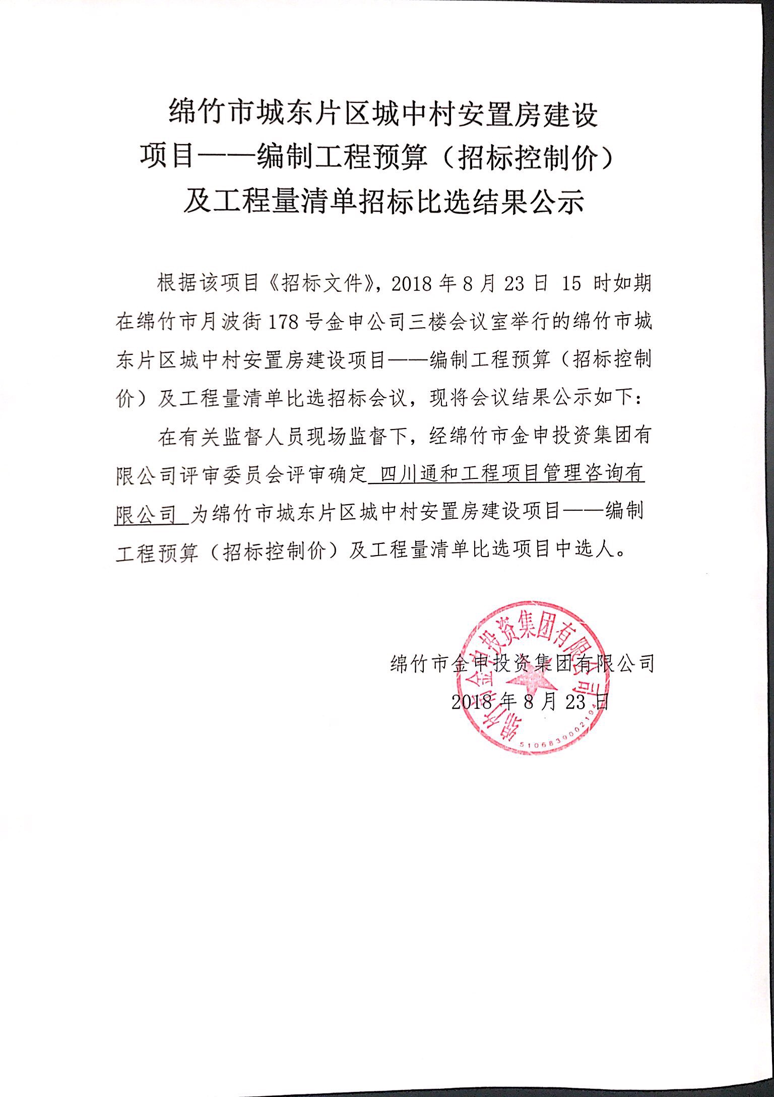 市城東安置房項目編制工程預算及工程量清單比選結果公示