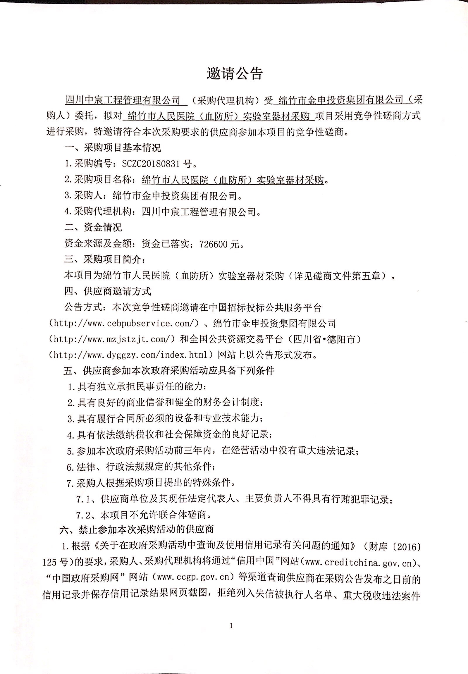 邀請(qǐng)公告(血防所實(shí)驗(yàn)器材采購(gòu))