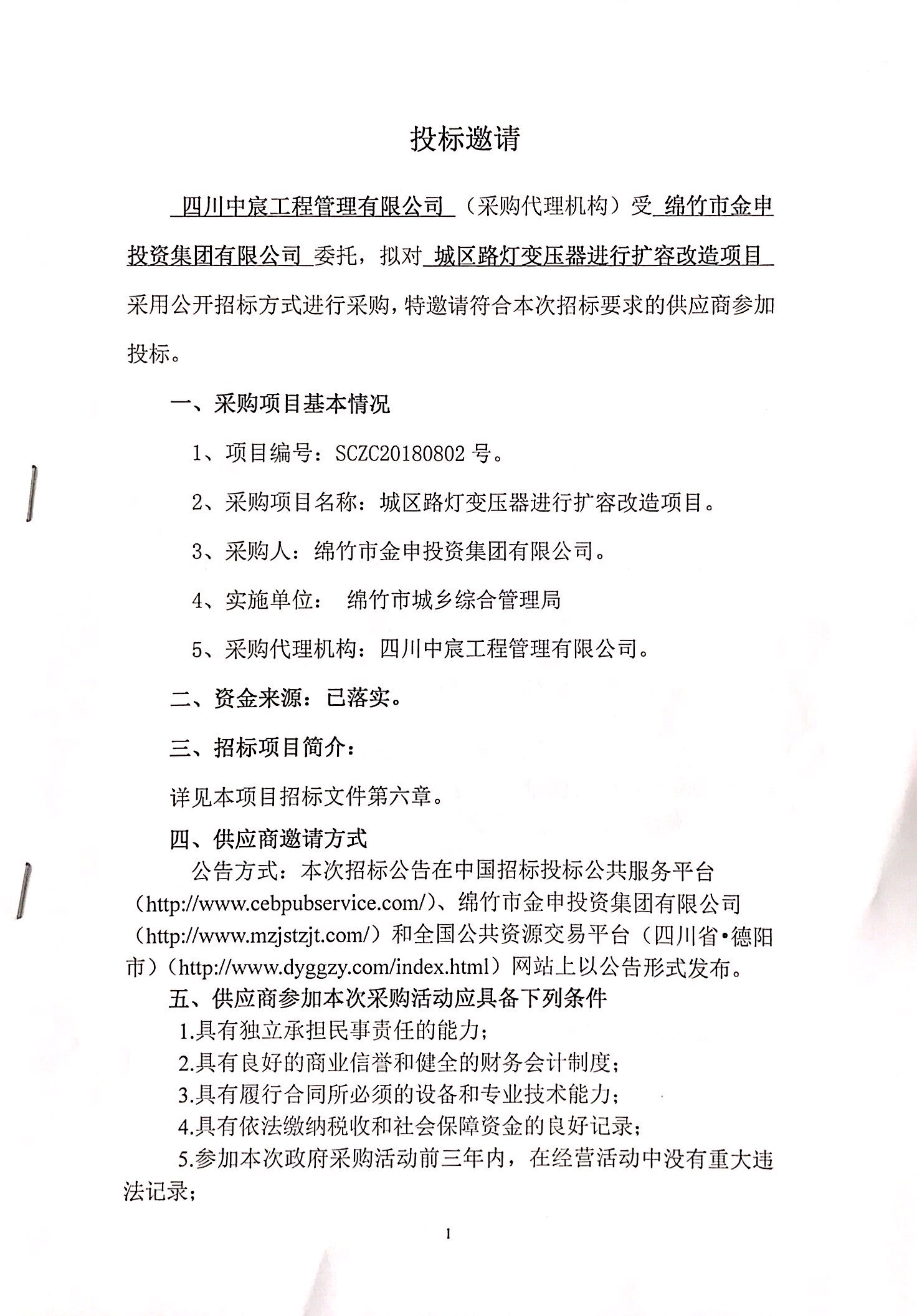 投標(biāo)邀請(qǐng)(城區(qū)路燈變壓器擴(kuò)容改造項(xiàng)目)