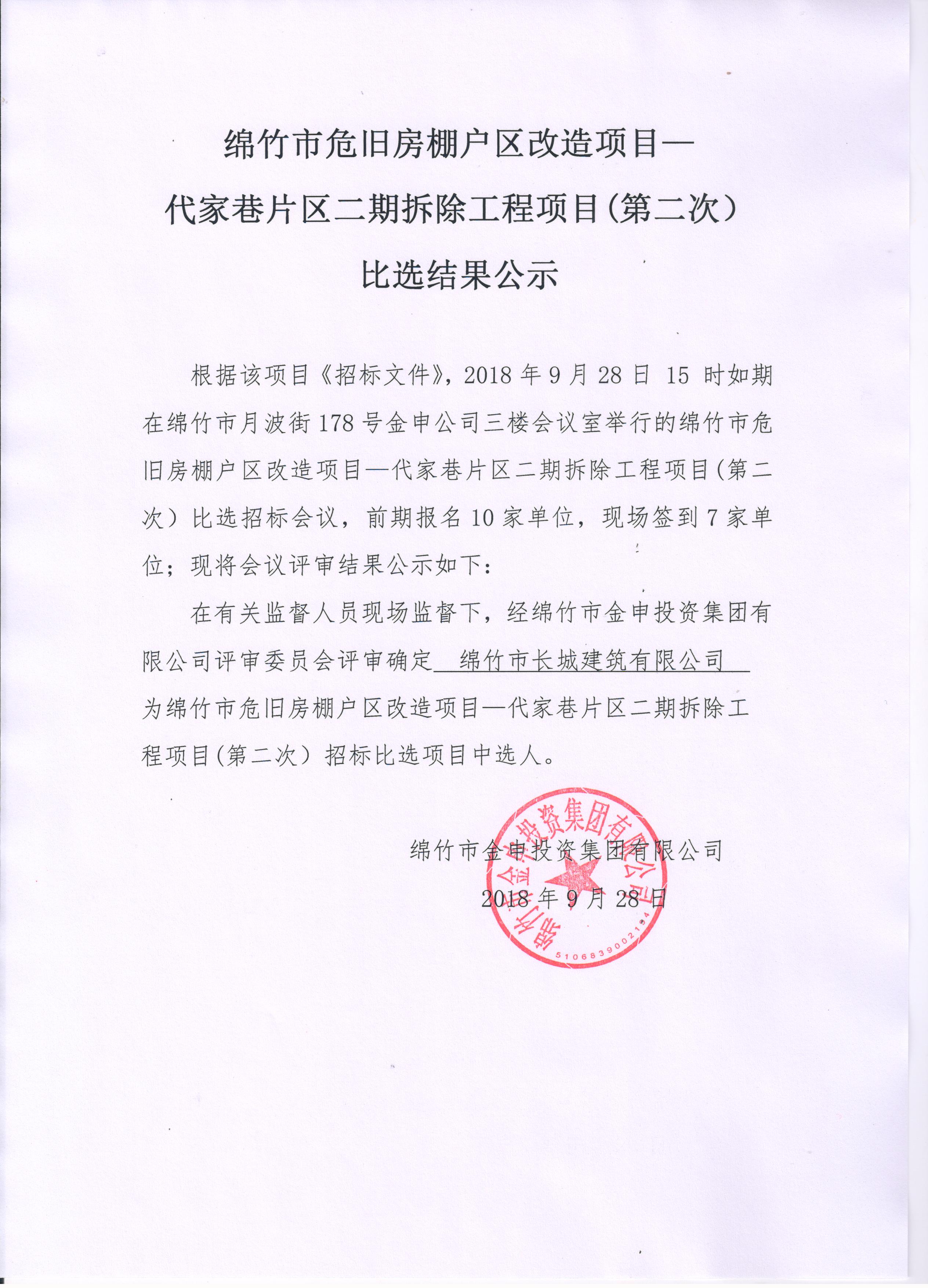 代家巷片區(qū)二期拆除工程項目(第二次)比選結(jié)果公示