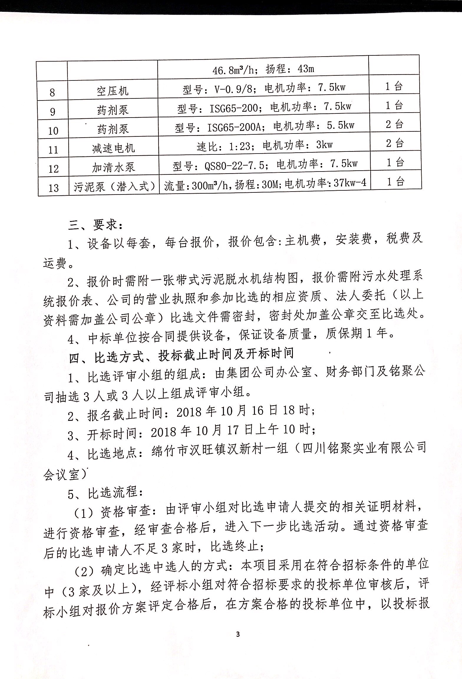 銘聚公司二期污水處理池環(huán)保設(shè)備壓濾機(jī)招標(biāo)比選公告