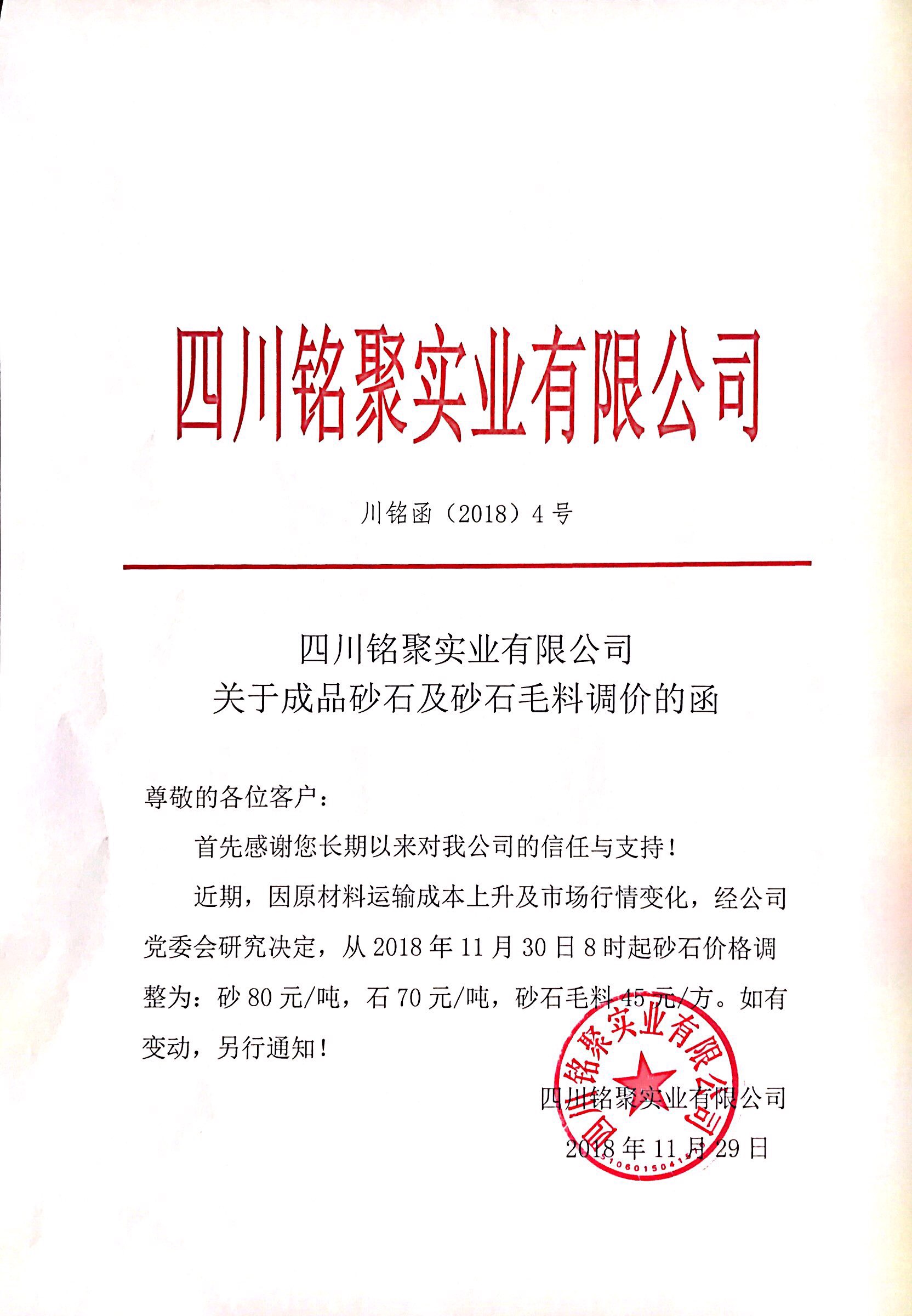 銘聚公司關(guān)于成品砂石及砂石毛料調(diào)價的函