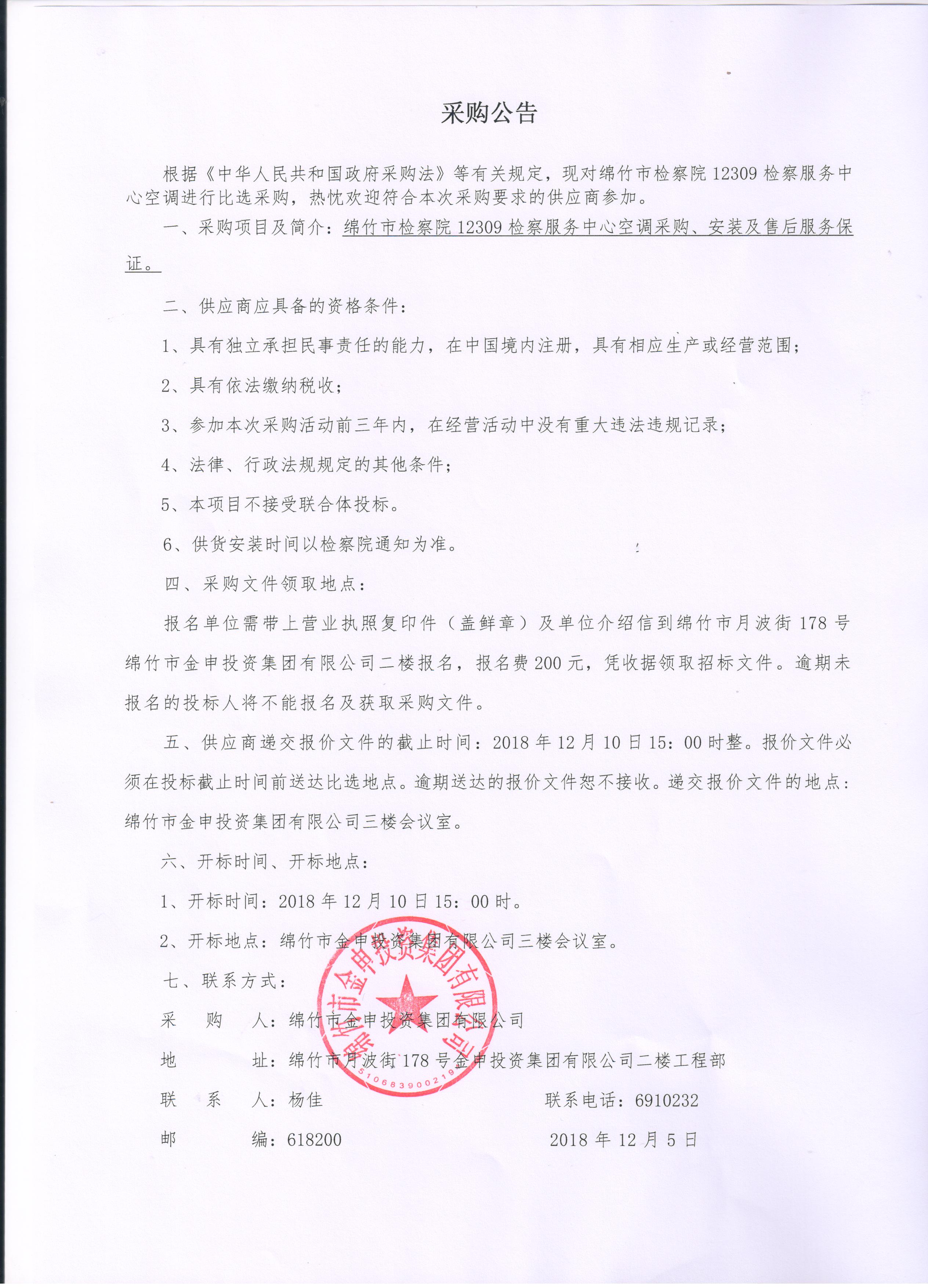 市檢察院12309檢察服務(wù)中心空調(diào)采購比選公告