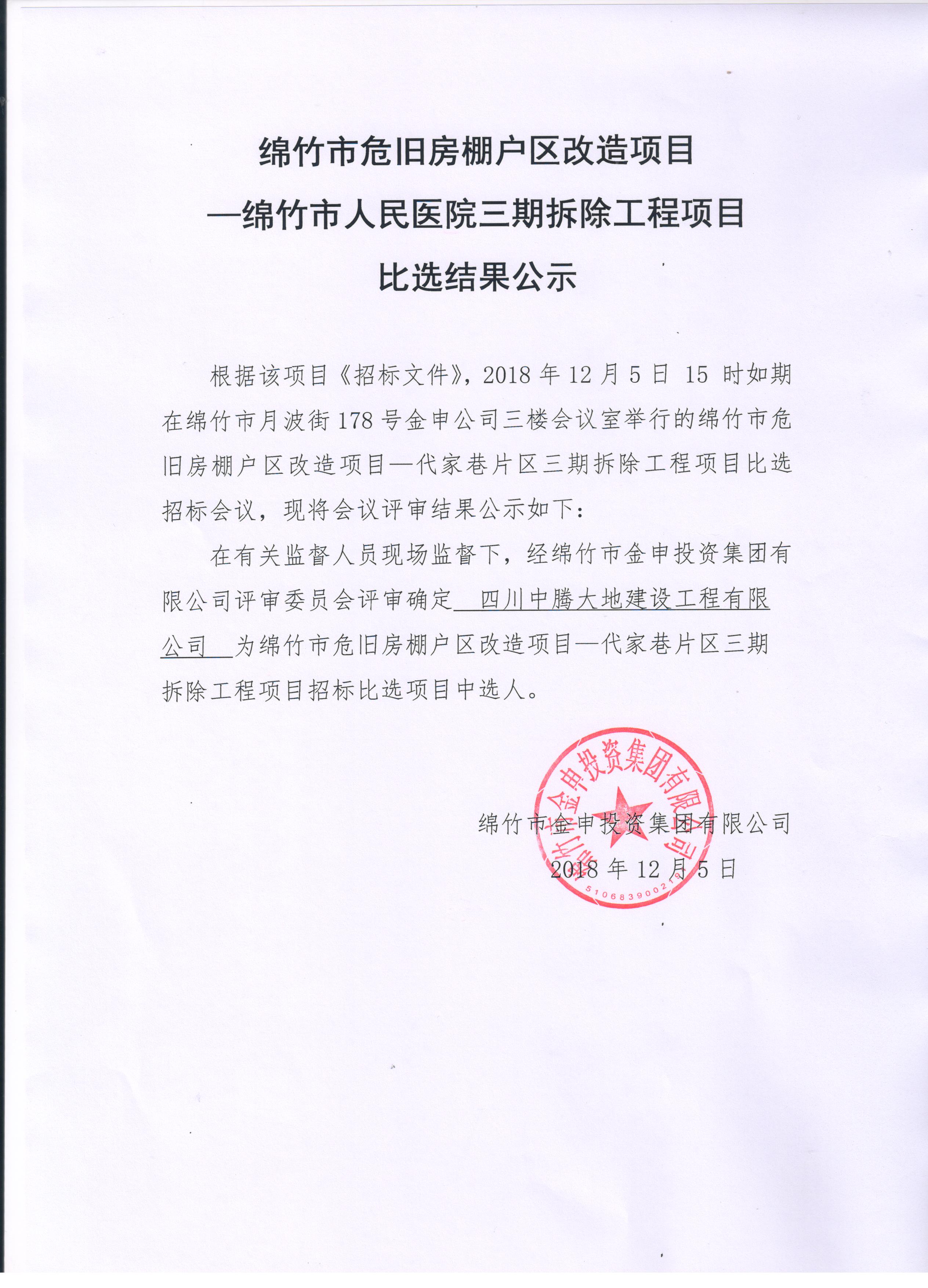 市人民醫(yī)院三期拆除工程項(xiàng)目比選結(jié)果公示